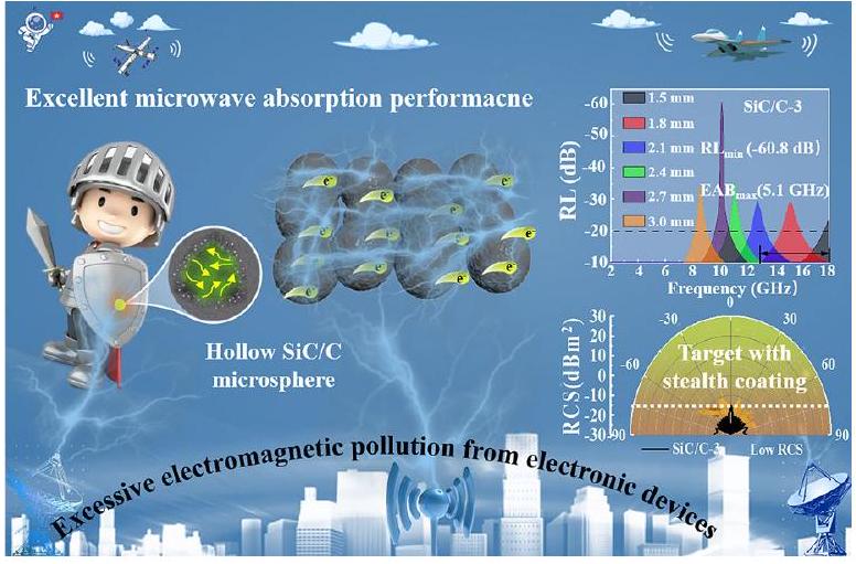 الهندسة التركيبية والفارغة لميكروسفيرات كربيد السيليكون/الكربون كمواد ماصة للأمواج الميكروية عالية الأداء مع تحمل بيئي جيد Compositional and Hollow Engineering of Silicon Carbide/Carbon Microspheres as High-Performance Microwave Absorbing Materials with Good Environmental Tolerance