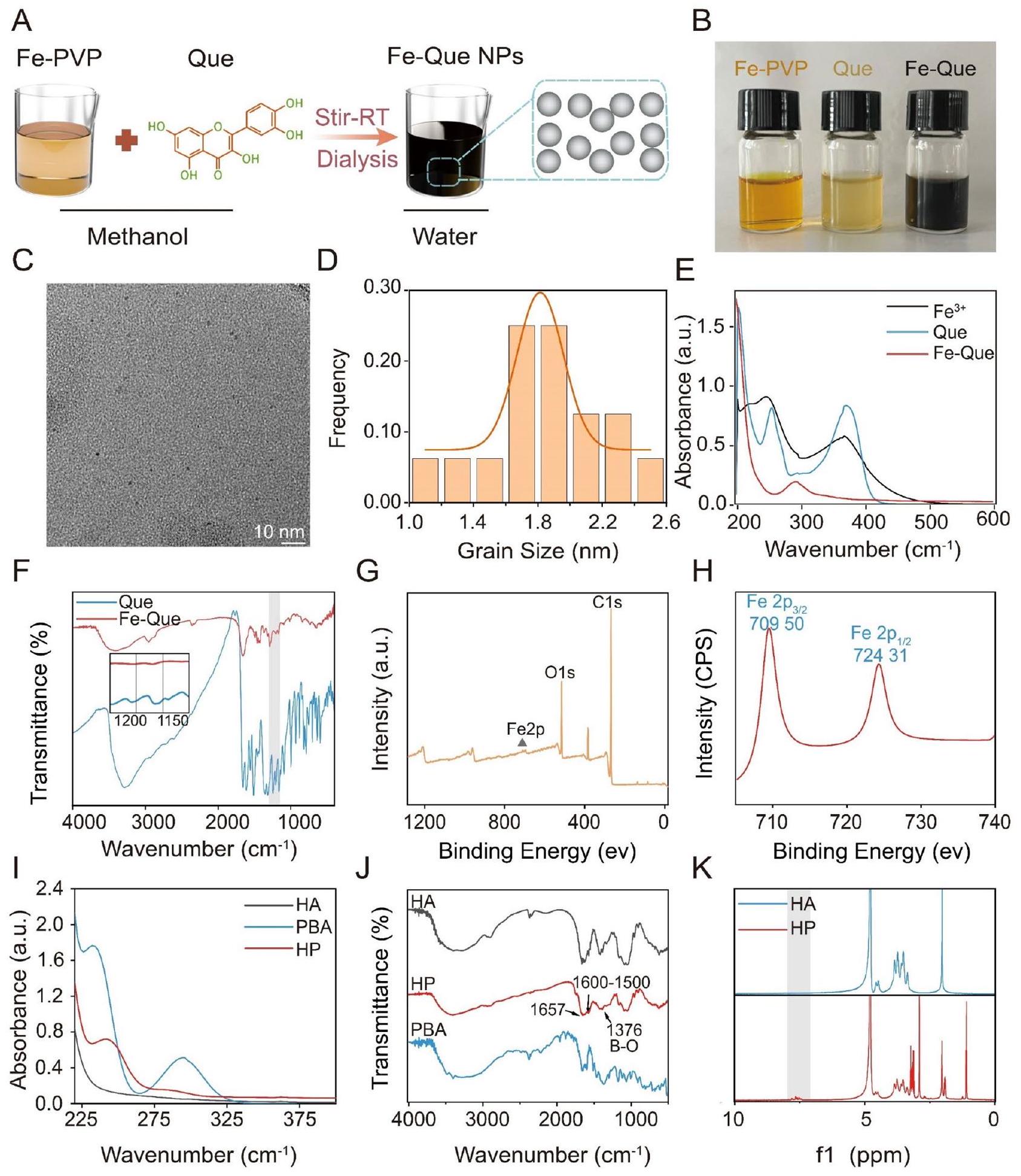 تم قياس طيف UV-vis-NIR لـ HA و PBA و HP باستخدام مطياف الأشعة فوق البنفسجية والمرئية (TU1810، شنغهاي، الصين). تم قياس أطياف FTIR لـ HA و PBA و HP باستخدام مطياف FTIR (WQF-530، بكين، الصين). تم تحليل الهياكل الكيميائية لـ HA و HP بواسطة الرنين المغناطيسي النووي للبروتون.