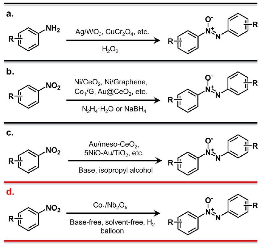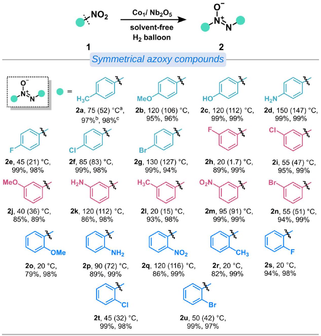 الهيدروجين الانتقائي الخالي من المذيبات للنيتروأرومات إلى مركبات الأزوكسي على ذرات الكوبالت المفروشة على شبكات نانوية من Nb2O5