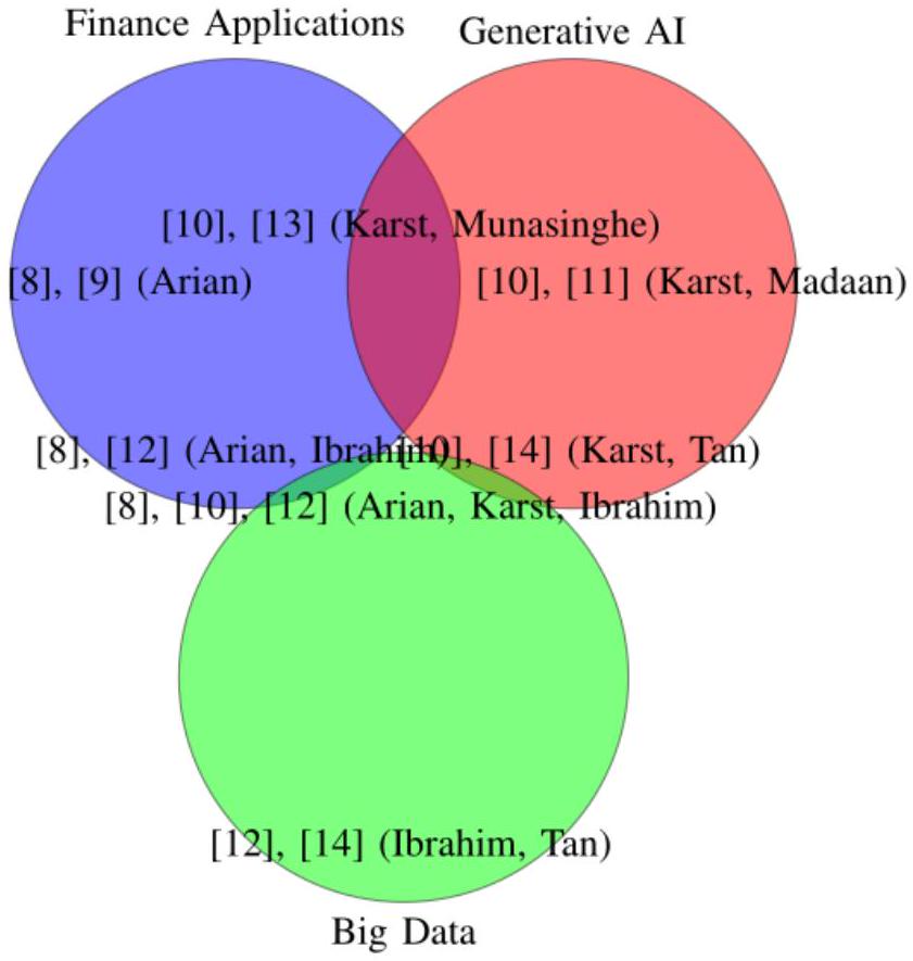 تستكشف مadaan وآخرون [11] التطبيقات الأوسع للذكاء الاصطناعي التوليدي، حيث يناقشون تأثيره عبر البنوك والخدمات المالية. تكشف الدراسة أن أدوات الذكاء الاصطناعي التوليدي يمكن أن تبسط العمليات المالية، مما يقلل من أوقات معالجة البيانات اليدوية بـ