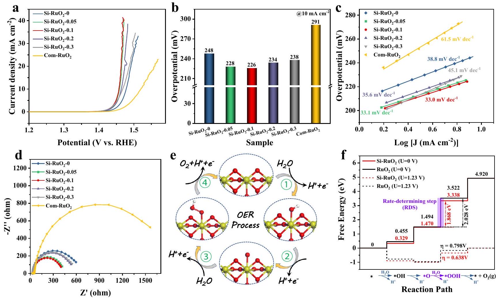 induced by interstitial Ru doping toward reversible oxygen conversion. Chem. Mater. 33, 4135-4145 (2021). - Liu, C., Jiang, Y., Wang, T., Li, Q. & Liu, Y. Nano Si-doped ruthenium oxide particles from caged precursors for high-performance acidic oxygen evolution. Adv. Sci. 10, 2207429 (2023).