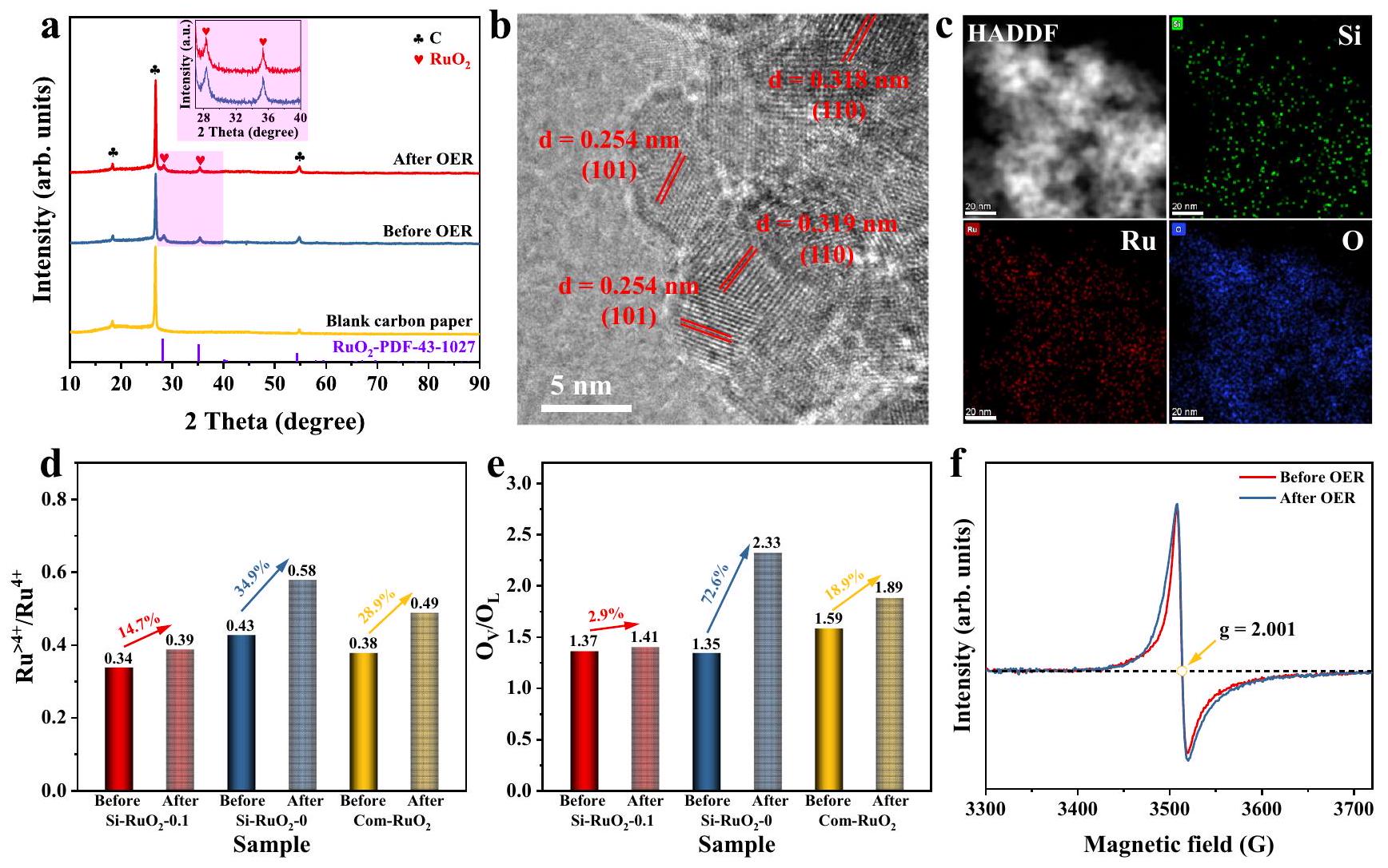مع ذرات الدوبينغ، التي تحد من كمية هياكل Ru-O في المحفز، وليس لها فائدة في تحسين نشاط أكاسيد الروثينيوم. لذلك، فإن استكشاف استراتيجيات دوبينغ فعالة لتقليل تساهمية رابطة Ru-O دون فقدان كمية هيكل Ru-O هو أمر مرغوب فيه للغاية ولكنه يمثل تحديًا.