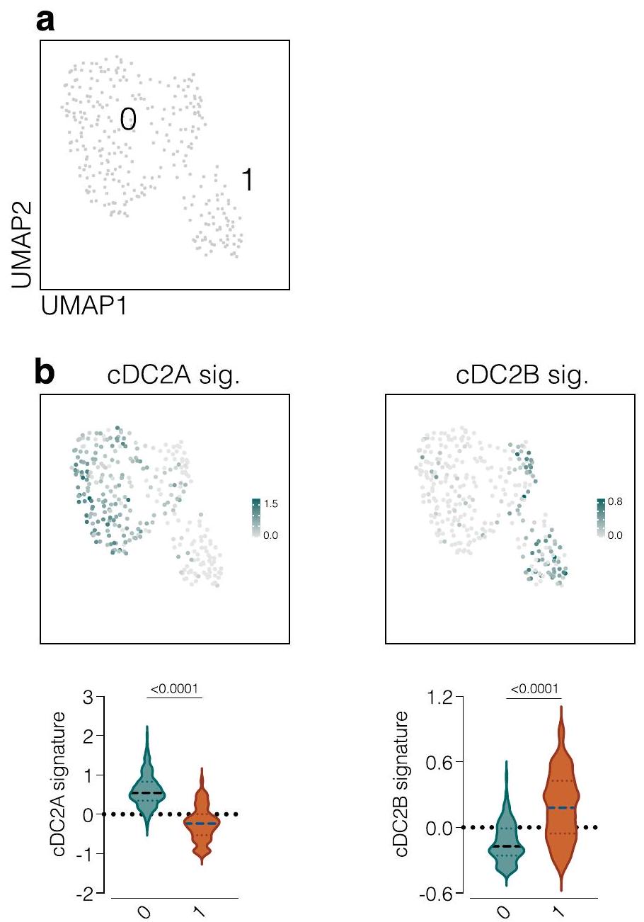 قمنا بإعادة تحليل مجموعة بيانات منشورة أبلغت عن cDC2As و cDC2Bs بين نظائر HLA-DR (HLA-DR)خلايا من الطحال البشري.