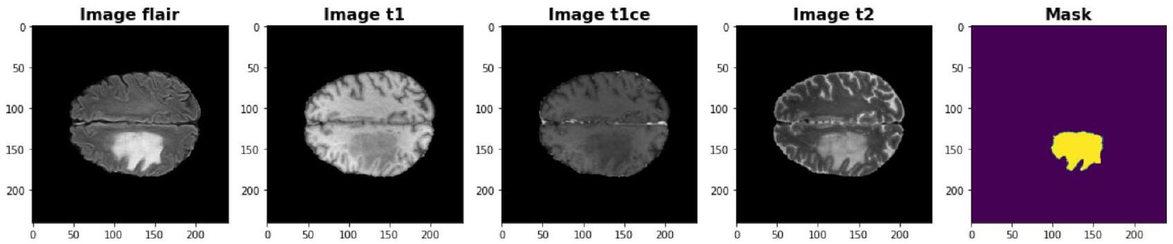 تستخدم هذه الدراسة مجموعة متنوعة من أنماط التصوير بالرنين المغناطيسي (MRI)، بما في ذلك التصوير بالرنين المغناطيسي المعتمد على استعادة الانعكاس السائل، والتصوير بالرنين المغناطيسي المعتمد على كثافة البروتون، والتصوير بالرنين المغناطيسي المعتمد على T2، والتصوير بالرنين المغناطيسي المعتمد على T1، لتحديد أورام الدماغ. يعتمد العلاج الفعال لأورام الدماغ على الكشف المبكر. يتطلب الأمر دراسة إشعاعية عندما يكون هناك اشتباه سريري في وجود ورم دماغي لتحديد الموقع الدقيق، ومدى التأثير على المناطق المجاورة. بناءً على هذه المعلومات، يمكن تحديد العلاج الأنسب، سواء كان جراحة، أو علاج إشعاعي، أو علاج كيميائي. يمكن أن يزيد الكشف المبكر عن الورم بشكل كبير من فرص بقاء المريض. يوضح الشكل 2 التصور لفحص الرنين المغناطيسي متعدد الأنماط للدماغ.
