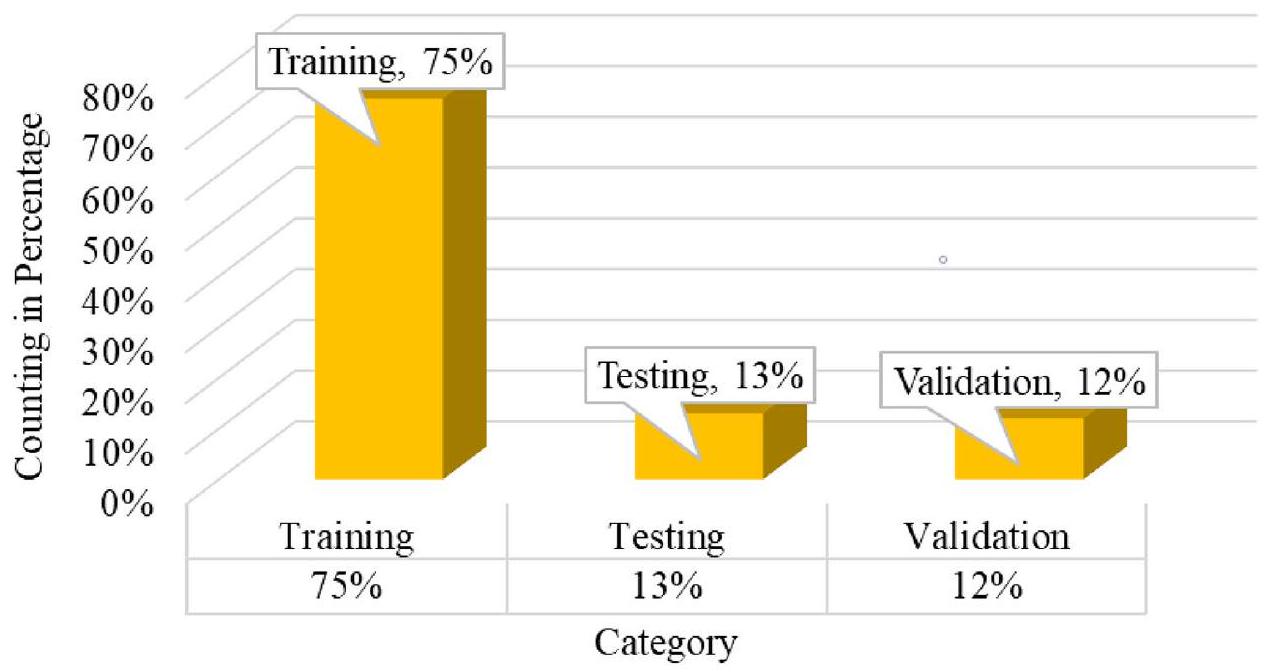 يمثل الشكل 7 الرسم البياني للتوزيع للتدريب والاختبار والتحقق.