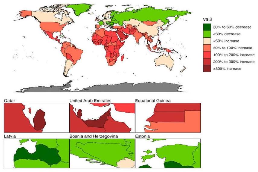 UI – 1.23 to -1.07 ). Among all 204 countries and territories, Spain had the greatest rise in ASDR (EAPC=0.94,
