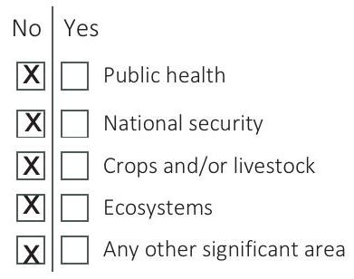 X Any other potentially harmful combination of experiments and agents