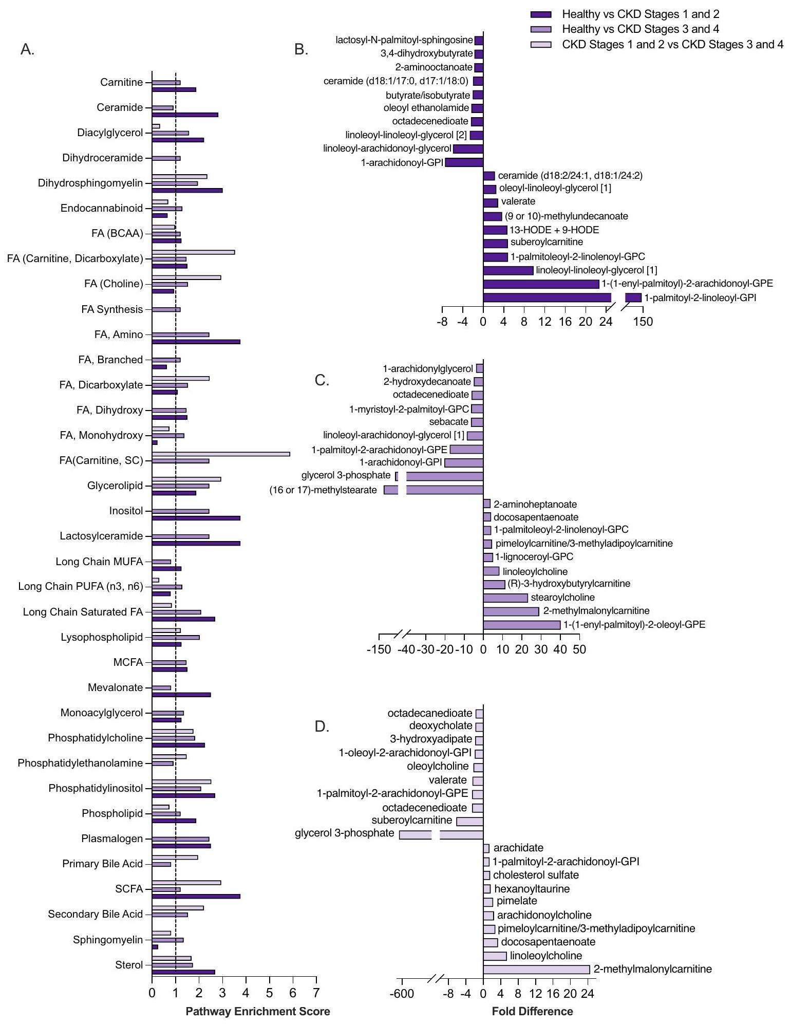 . Consequently, these different metabolomic detection methods should be considered when comparing shifts in uremic toxin abundances and/or concentrations across studies. Collectively, these results support that monitoring serum uremic toxin levels across disease stages can be linked to clinically-meaningful parameters that can be monitored for earlier intervention to abate disease progression.