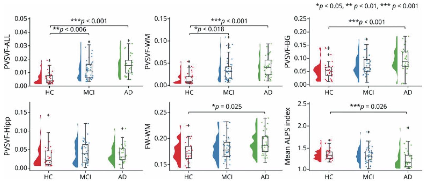 | حجم الفضاء المحيط بالأوعية | 3D-T2WI وغيرها. | توسع الفضاء المحيط بالأوعية | الفراغ المحيط بالأوعية | تراكم النفايات الأيضية |