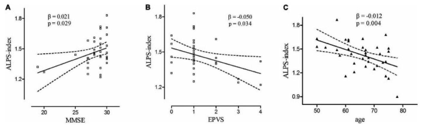 negative correlation between age and ALPS-index in com-munity-dwelling elderly aged 60 years and older, with a standard partial regression coefficient of