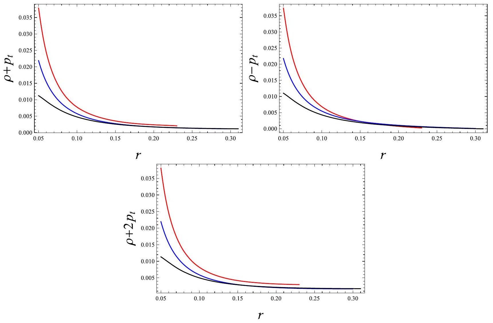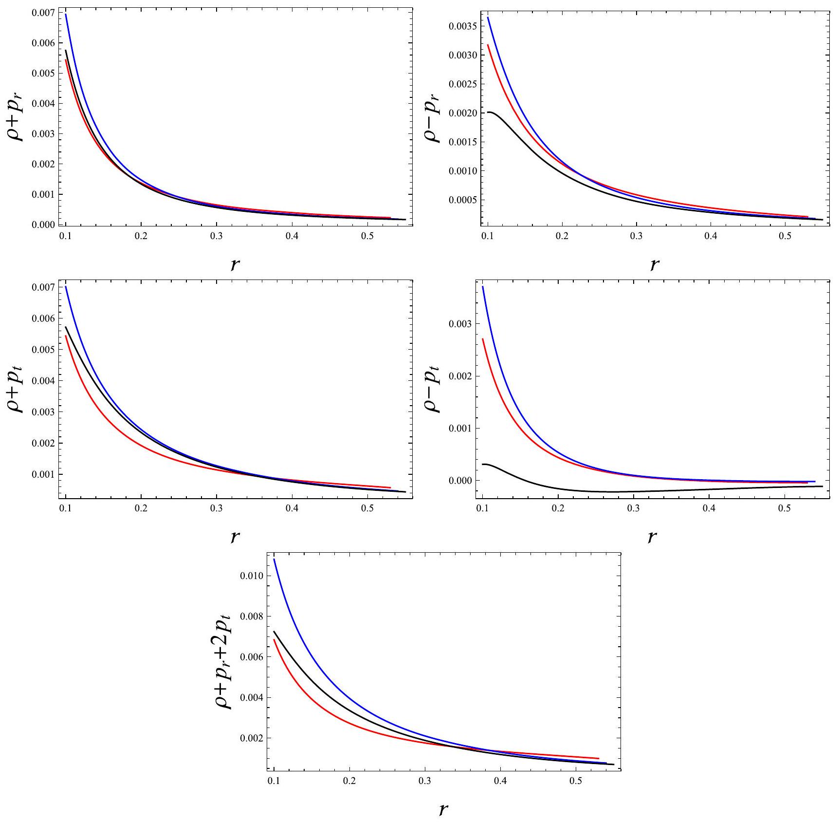 - Bearing an ordinary matter by the interior of a celestial body can be guaranteed through the satisfaction of some constraints. They are referred to the energy conditions which are in fact linear combinations of fluid parameters in the