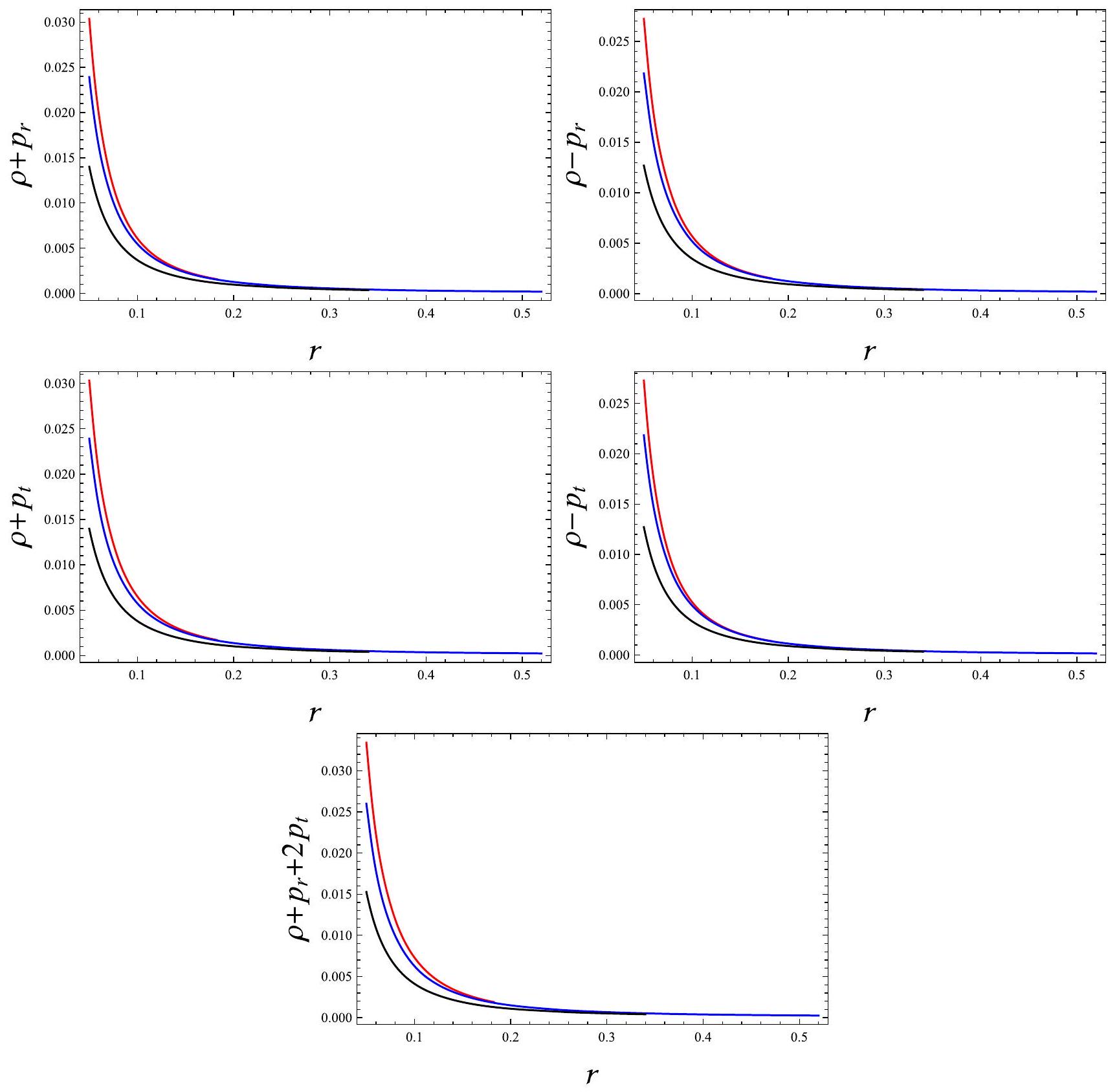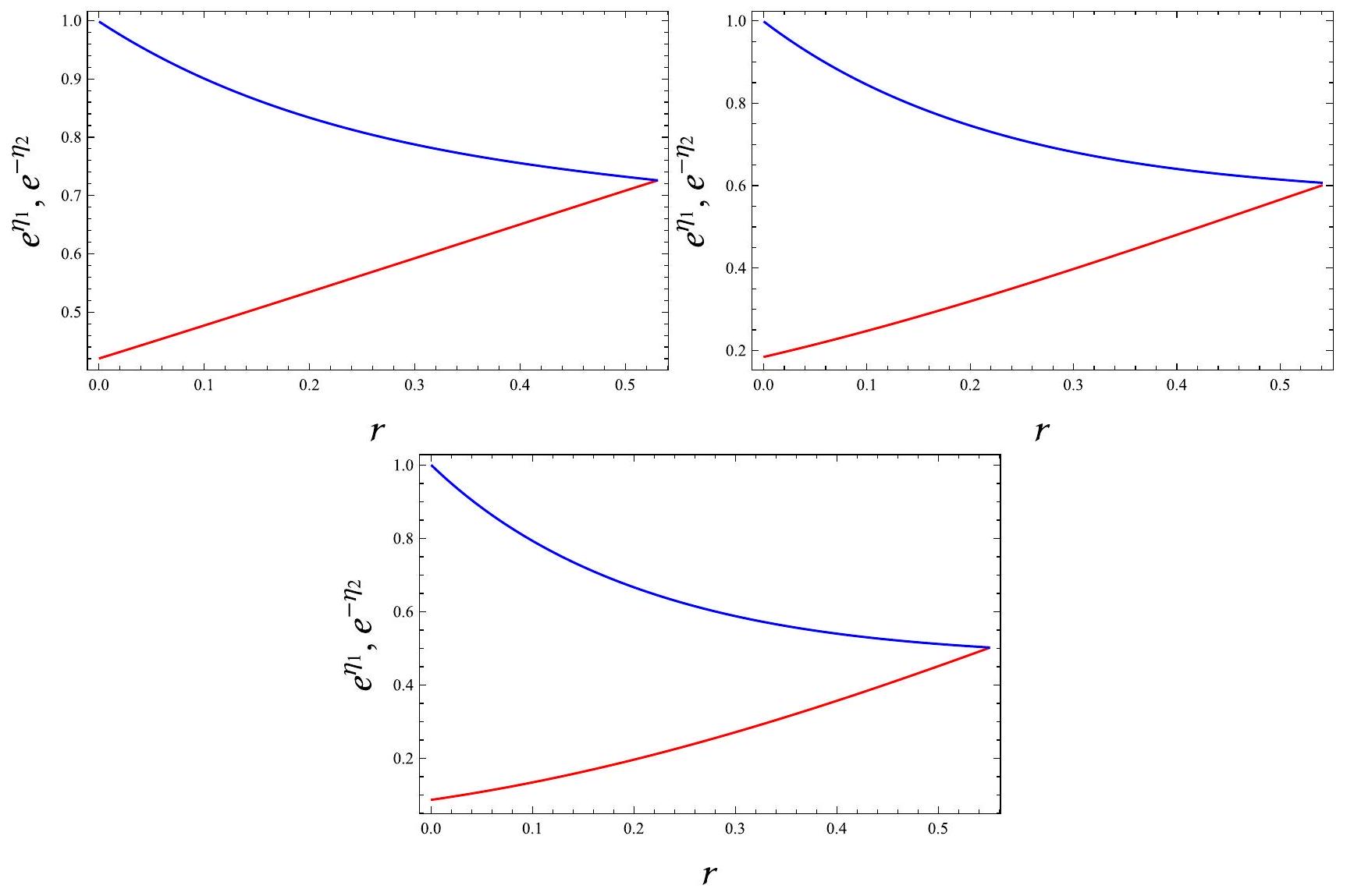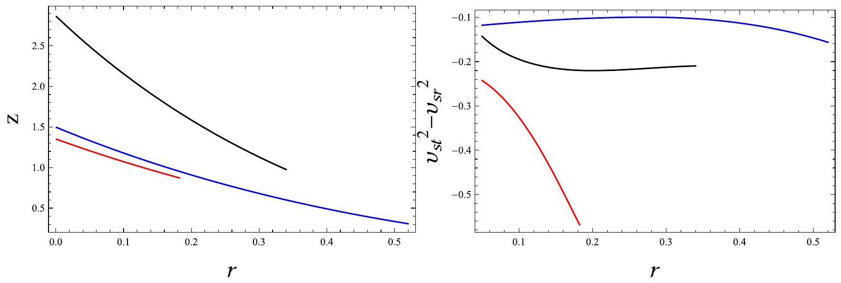 . Given that this factor depends solely on metric potential, it is imperative for it to decrease outwards. Additionally, its value must not exceed 5.211 at for the model to be considered acceptable [81]. - To assess the system’s stability just deviated from the hydrostatic equilibrium has garnered significant attention in modern research. Herrera et al. [83,84] introduced the concept of cracking, occurring within the fluid when the total force in the radial direction switches its sign at a specific point due to some external disturbances. The avoidance of cracking relies on the satisfaction of the