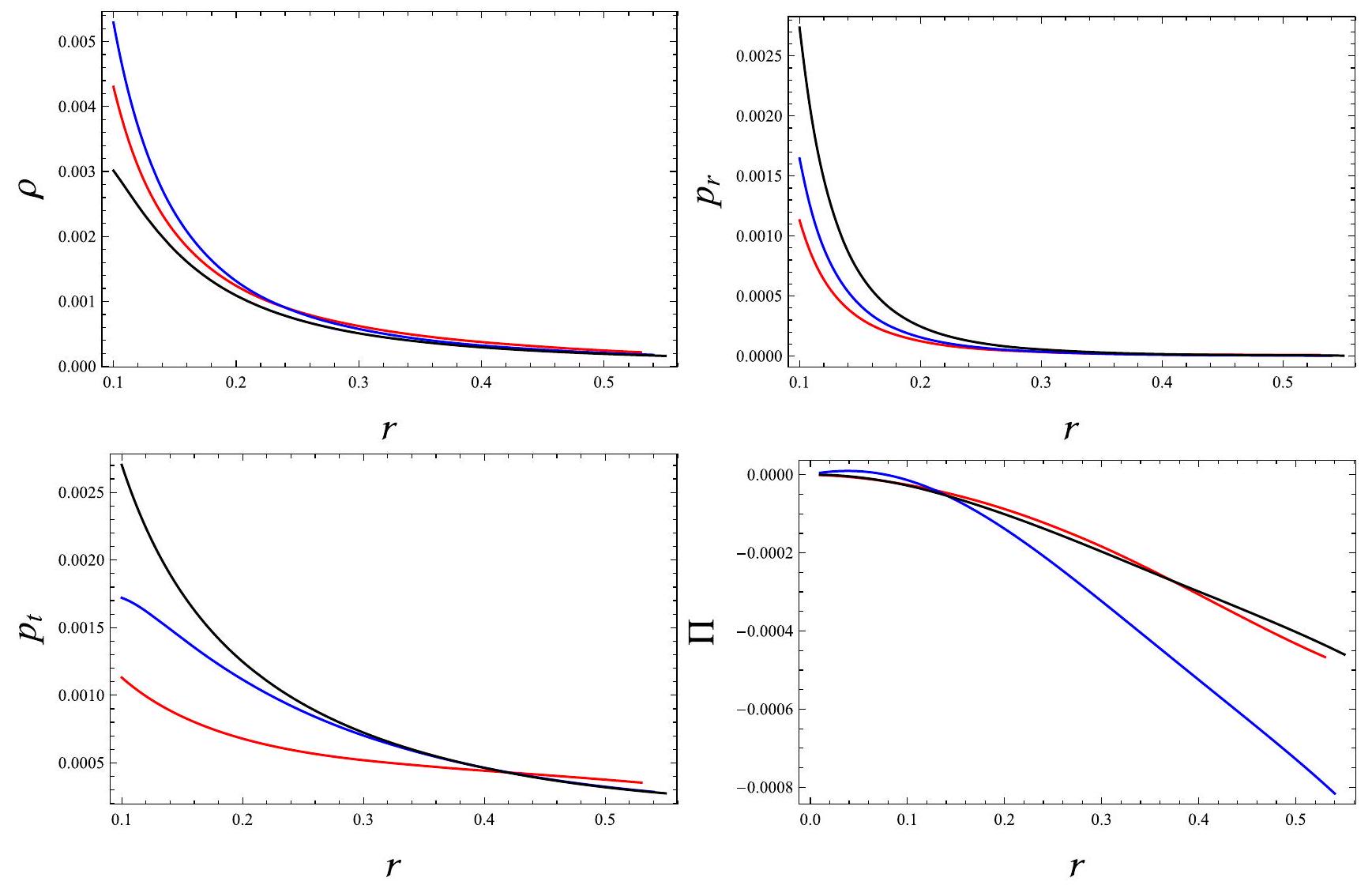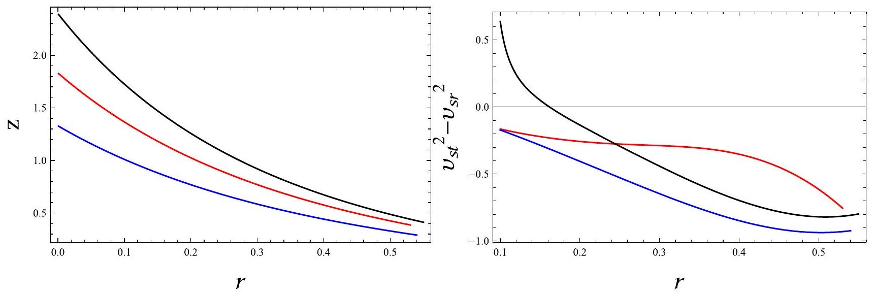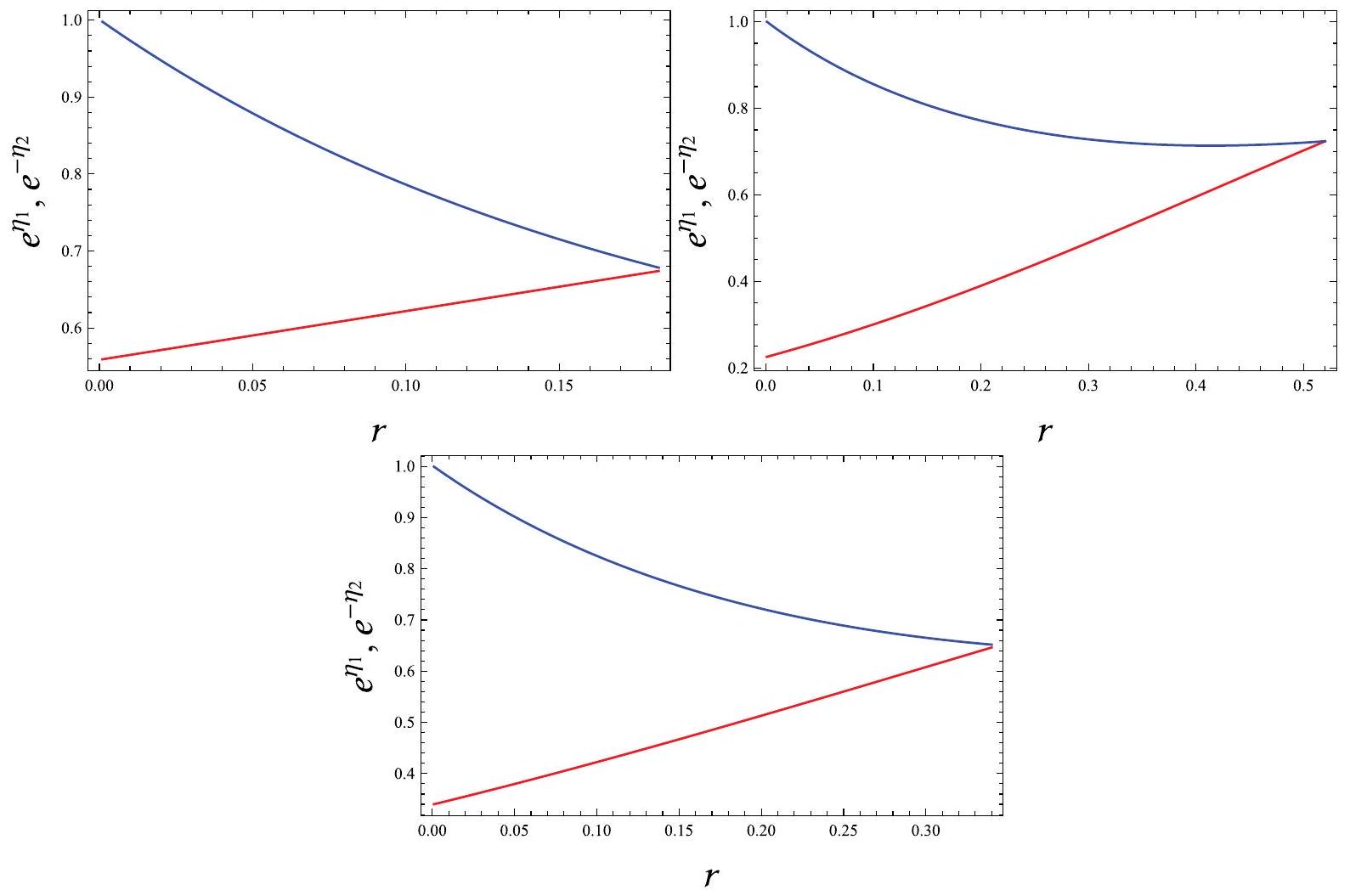 . Given that this factor depends solely on metric potential, it is imperative for it to decrease outwards. Additionally, its value must not exceed 5.211 at for the model to be considered acceptable [81]. - To assess the system’s stability just deviated from the hydrostatic equilibrium has garnered significant attention in modern research. Herrera et al. [83,84] introduced the concept of cracking, occurring within the fluid when the total force in the radial direction switches its sign at a specific point due to some external disturbances. The avoidance of cracking relies on the satisfaction of the