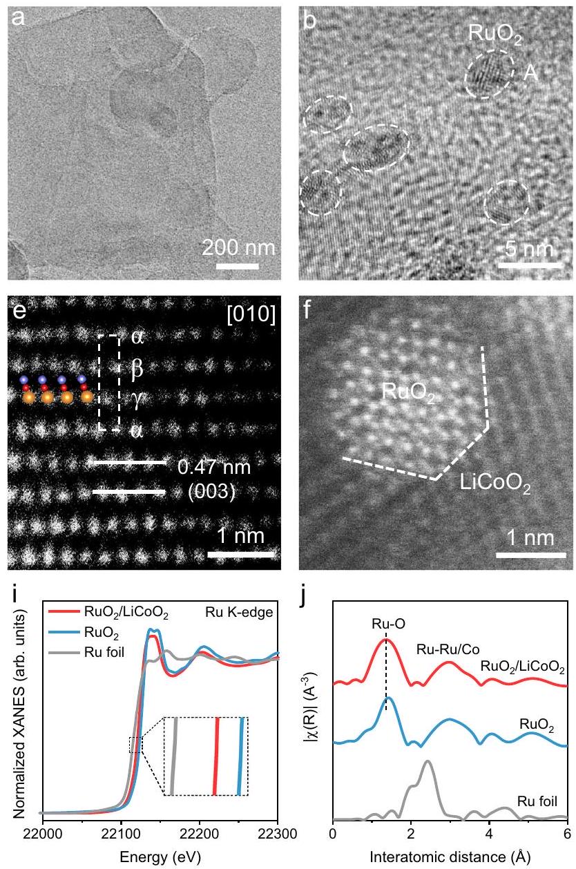 رابطة رو-أو، تمنع ذوبان مركز المعدن وتتبعه آلية امتصاص أكسجين مستقرة نسبيًا (AEM)في الوقت الحالي، لا يمكن للدعائم المانحة للإلكترونات ذات القدرة التنظيمية المحدودة تلبية الطلب على التلاعب بروابط Ru-O المتغيرة ديناميكيًا تحت ظروف OER المعقدة ذات الجهد العالي.. لذلك، فإن تصميم الدعامات القادرة على تنظيم الهيكل الإلكتروني بشكل ديناميكي استجابةً للتغيرات في عملية التفاعل الحفزي، فإنها جذابة للغاية. لمواجهة هذا التحدي، تعمل أكاسيد المعادن الانتقالية مع إدخال الكاتيونات على تحسين البيئة الميكروية المحلية لروابط المعادن والأكسجين بشكل ديناميكي خلال التفاعل الحفزي من خلال استخراج وإدخال الكاتيونات. .من الجدير بالذكر أن أكسيد الكوبالت الليثيوم ) مع هيكل طبقي فريد يظهر ترتيب كاتيون منظم وثبات حراري متفوق الحافة الضيقة المشتركةهيكل ثماني السطوح فييقلل من حاجز طاقة الهجرة لـويضمن الانتشار ثنائي الأبعاد لـفي الطائرة، مما يسهل إعادة البناء الديناميكي أثناء عملية التحفيز. ومع ذلك، فإن الهيكل الضخم متعدد الطبقات لـتظهر قدرة بطيئة على نقل الإلكترونات ومساحة سطح محدودة، مما لا يمكنها من تلبية متطلبات دعم المحفز بكفاءة.. في هذا الصدد، ثنائي الأبعادتقلل الأوراق النانوية بشكل ملحوظ من مسار نقل الإلكترونات بين البلورات وتعزز الموصلية. بالإضافة إلى ذلك، فإن هيكل النانو شيت ثنائي الأبعاد يشكل قناة سريعة لنقل الإلكترونات عمودية على مستوى التعرض، مما يؤدي إلى تفاعل قوي بين المعدن والدعم.. لذلك، استخدام ثنائي الأبعادالأغشية النانوية كدعم لـمن المتوقع أن يحقق تنظيمًا ديناميكيًا للهيكل الإلكتروني خلال التفاعلات الحفزية ويظهر نشاطًا حفزيًا عاليًا.