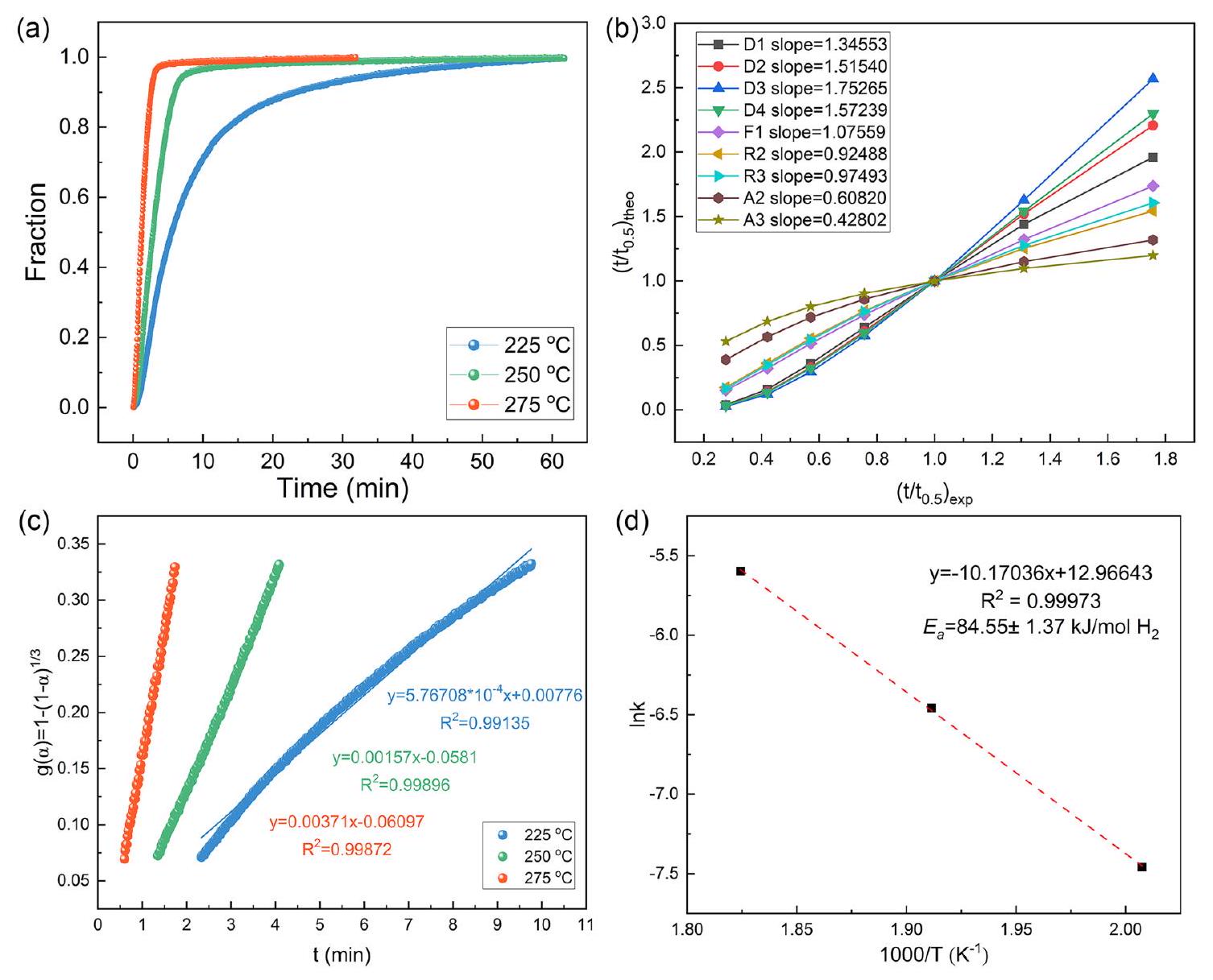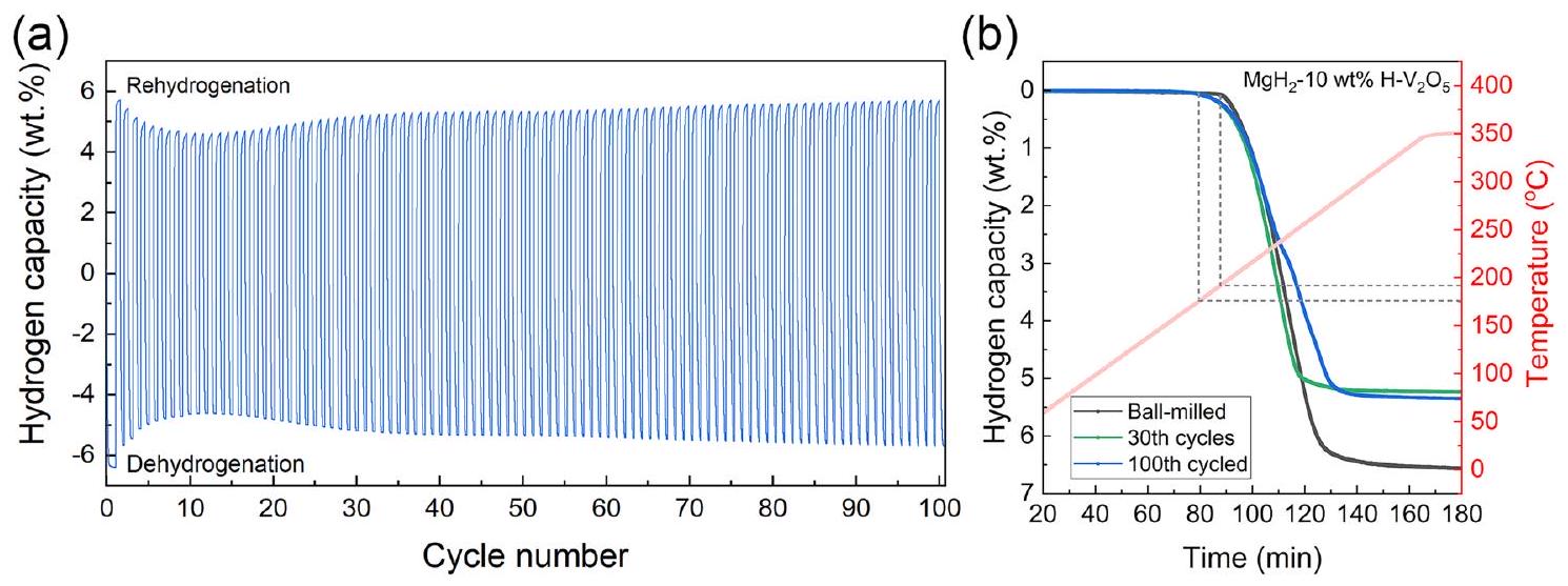 and capacity retention is as high as after 100 cycles at . - The composites present rapid kinetics and impressive hydrogen absorption capability at near room temperature.