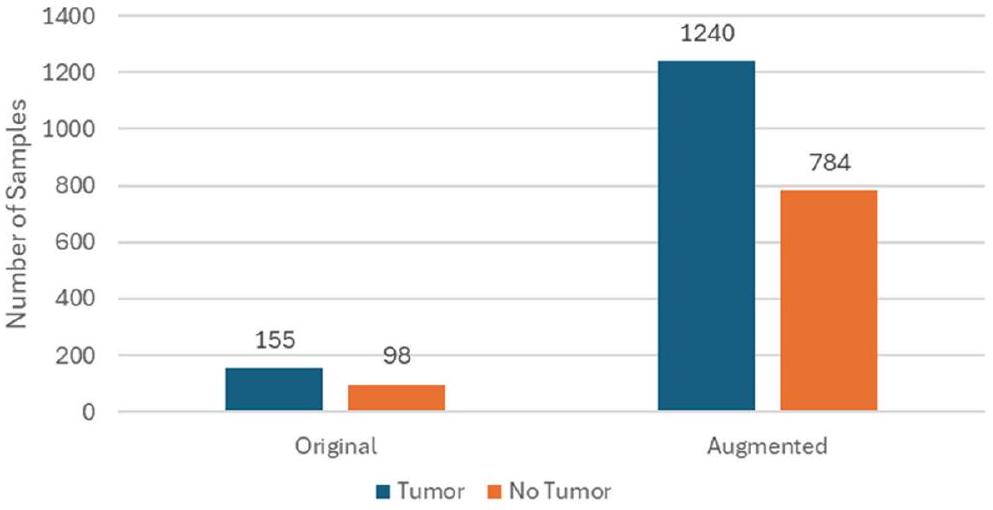 أورام الدماغ. من الضروري إزالة الصور التي تحتوي على عيوب، مثل ضبابية الحركة أو الضوضاء الناتجة عن الماسح الضوئي، لمنع النموذج من تعلم ميزات غير ذات صلة أو مضللة. تعزز مجموعات البيانات النظيفة قدرة النموذج على التعميم من خلال التعلم من صور عالية الجودة خالية من العيوب. توسيع البيانات، بما في ذلك التدوير، والانعكاس، والتغيير في الحجم، والتشوهات المرنة، يوسع مجموعة البيانات بشكل مصطنع ويقدم مجموعة متنوعة من التحولات التي قد يواجهها النموذج في سيناريوهات العالم الحقيقي. هذا مهم بشكل خاص لمهام التصوير الطبي، حيث يحاكي التباين في مظهر الورم وموقعه، مما يعزز قوة النموذج وقدرته على التعميم.