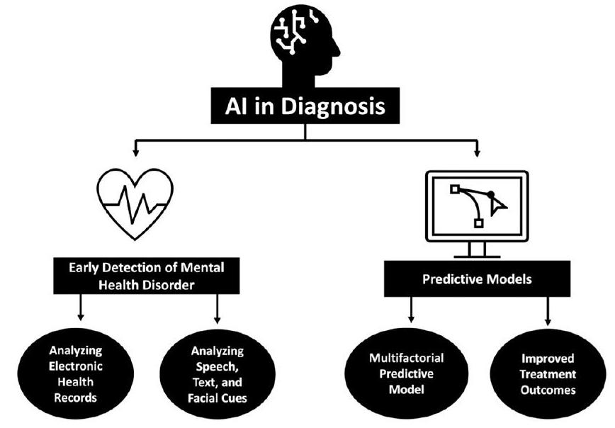treatment outcomes. AI-driven models can predict how a patient may respond to different treatment approaches, whether psychotherapy, medication, or lifestyle changes [10,76]. This personalized approach ensures that individuals receive tailored interventions, optimizing the chances of recovery and minimizing the risk of adverse effects [77]. Furthermore, predictive models have the capability to forecast disease progression, thereby assisting healthcare providers in making well-informed decisions about treatment plans and resource allocation [78]. By predicting the probable course of mental health disorders, healthcare systems can enhance their readiness to address the requirements of mental health services and effectively allocate resources accordingly. For example, IBM’s “Watson for Drug Discovery” uses AI to analyze vast genetic and chemical information datasets to identify potential drug candidates for mental health conditions such as schizophrenia and bipolar disorder [79]. This accelerates drug development, potentially offering more effective treatments for these conditions.