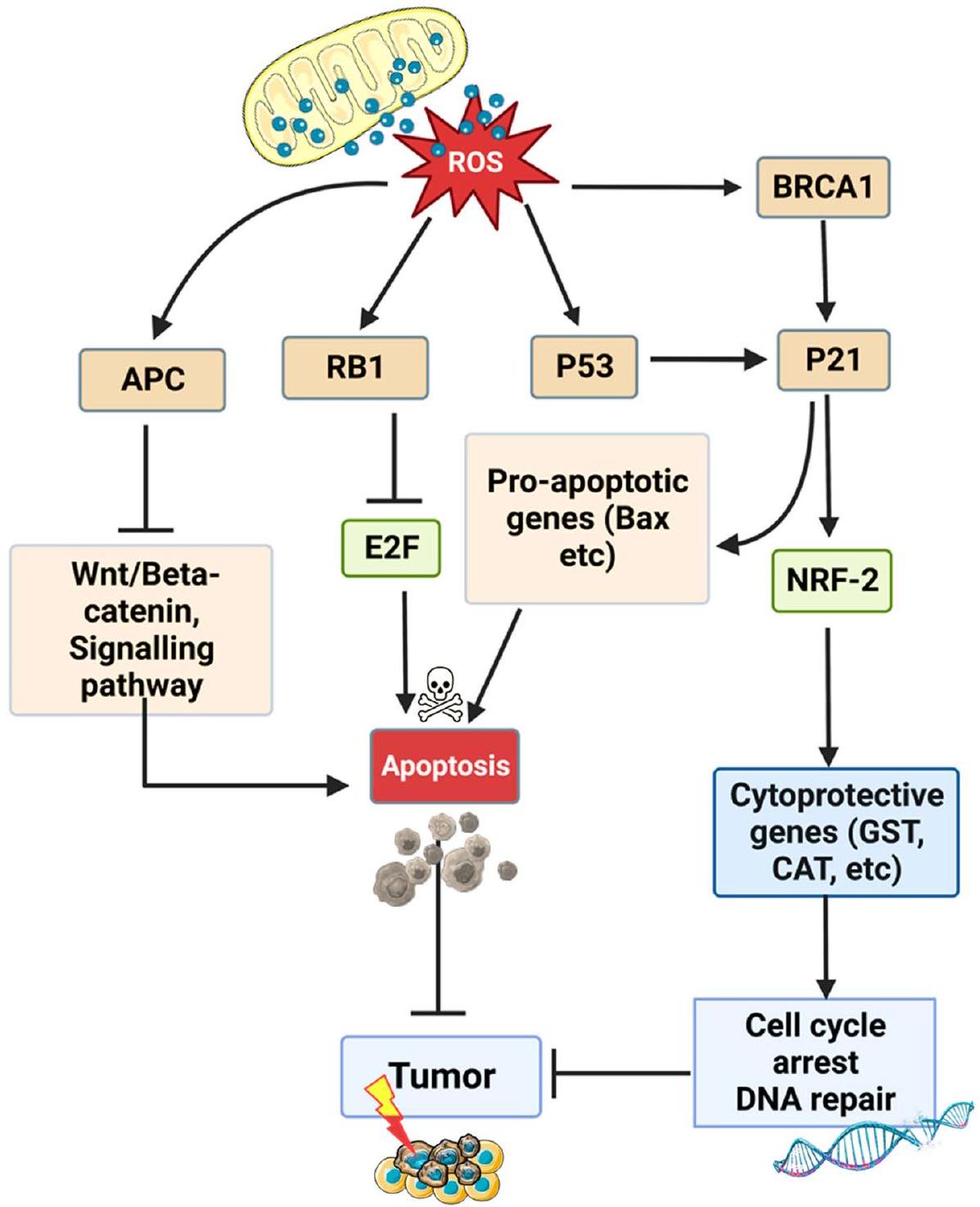 p53 is the chief regulator of programmed cell death and prevents tumorigenesis by facilitating the regulation of oxidative stress in cells. At low oxidative stress level, p53 promotes cell survival by stimulating the expression of antioxidant genes, including Parkin, sestrins
