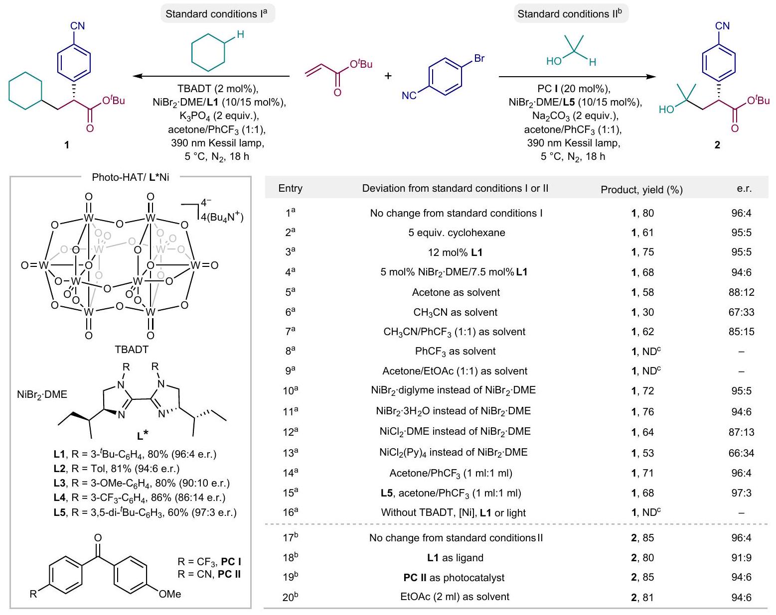 arylation and alkylation enabled by the synergy of triplet excited ketones and nickel catalysts. J. Am. Chem. Soc. 140, 12200-12209 (2018). - Sarver, P. J. et al. The merger of decatungstate and copper catalysis to enable aliphatic