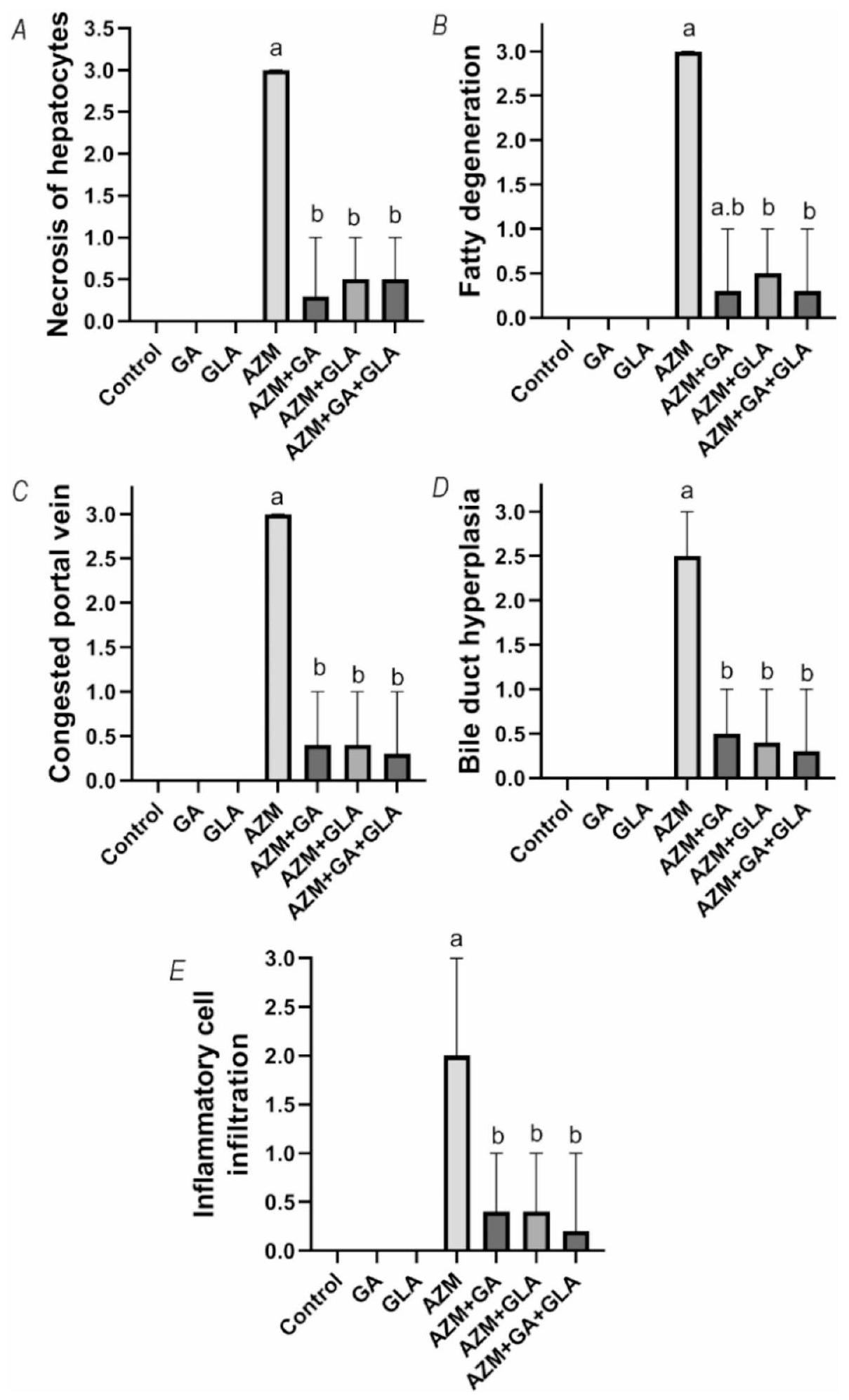 GA, GLA, and their combination reduced inflammation in the livers of AZM-treated rats
