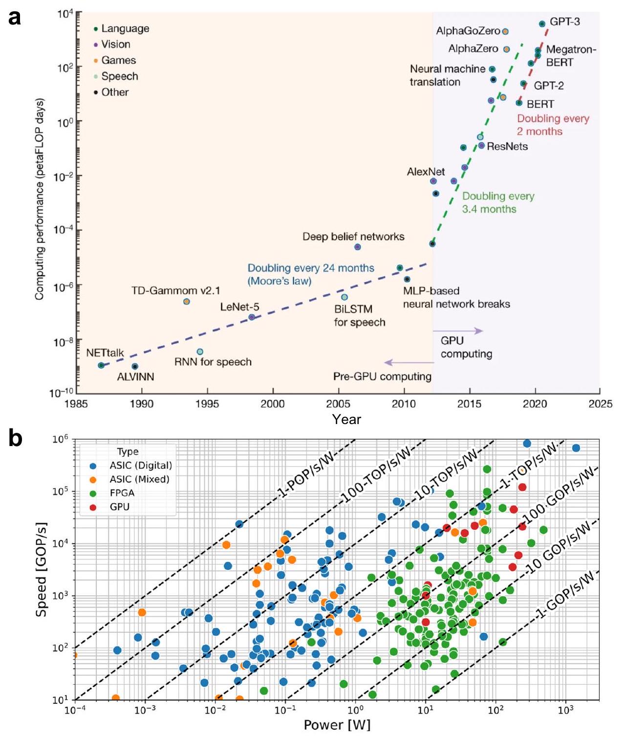 استخدام وحدات معالجة الرسوميات (GPUs) لتنفيذ الشبكات العصبية الاصطناعية (انظر الشكل 1أ)، حيث يمكنها تنفيذ عمليات متعددة بشكل متوازي