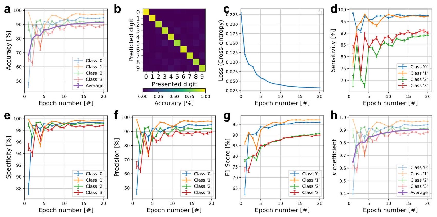 عمل(ات) | جهاز | نوع الشبكة العصبية / مجموعة البيانات | حجم العارضة | عقدة CMOS | ADC | تركيب الخلية | دائرة الإدخال (DAC) | إلكترونيات الاستشعار | دالة التنشيط | محددات الصف/العمود | دالة تفعيل سوفت ماكس | الاستدلال/ التدريب | دائرة وزن البرنامج |