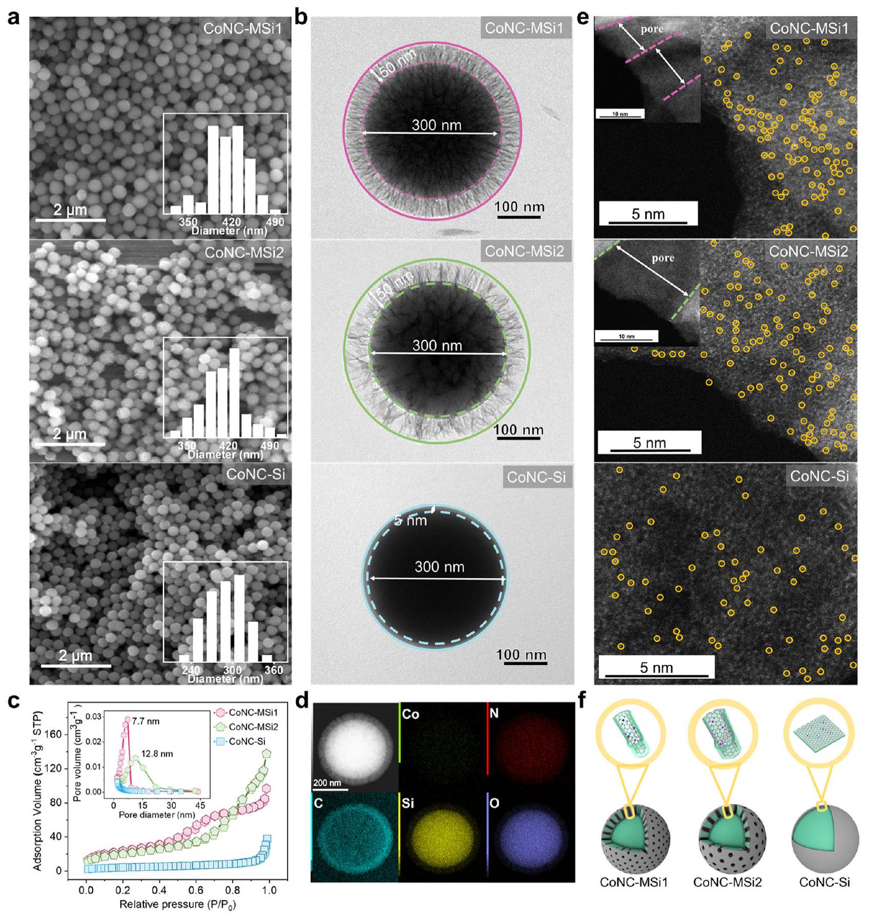 أنتجت قشرة CoNC-MSil مساحة سطح محددة أكبر بمقدار 6.8 مرة من CoNC-Si غير المسامي (الجدول التكميلي 1).