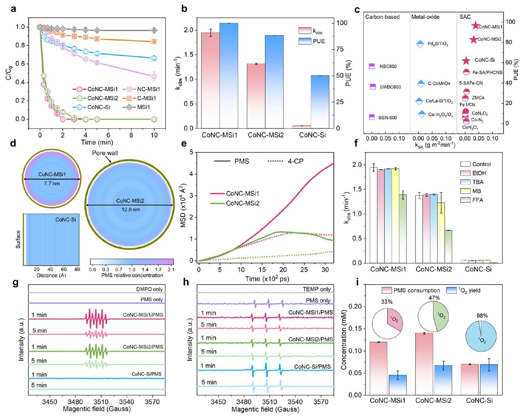 support a profoundly raised intrinsic reactivity of the Co atoms under nanoconfinement. Notably, the 4-CP degradation reactivity of CoNCMSi 2 was also enhanced relative to