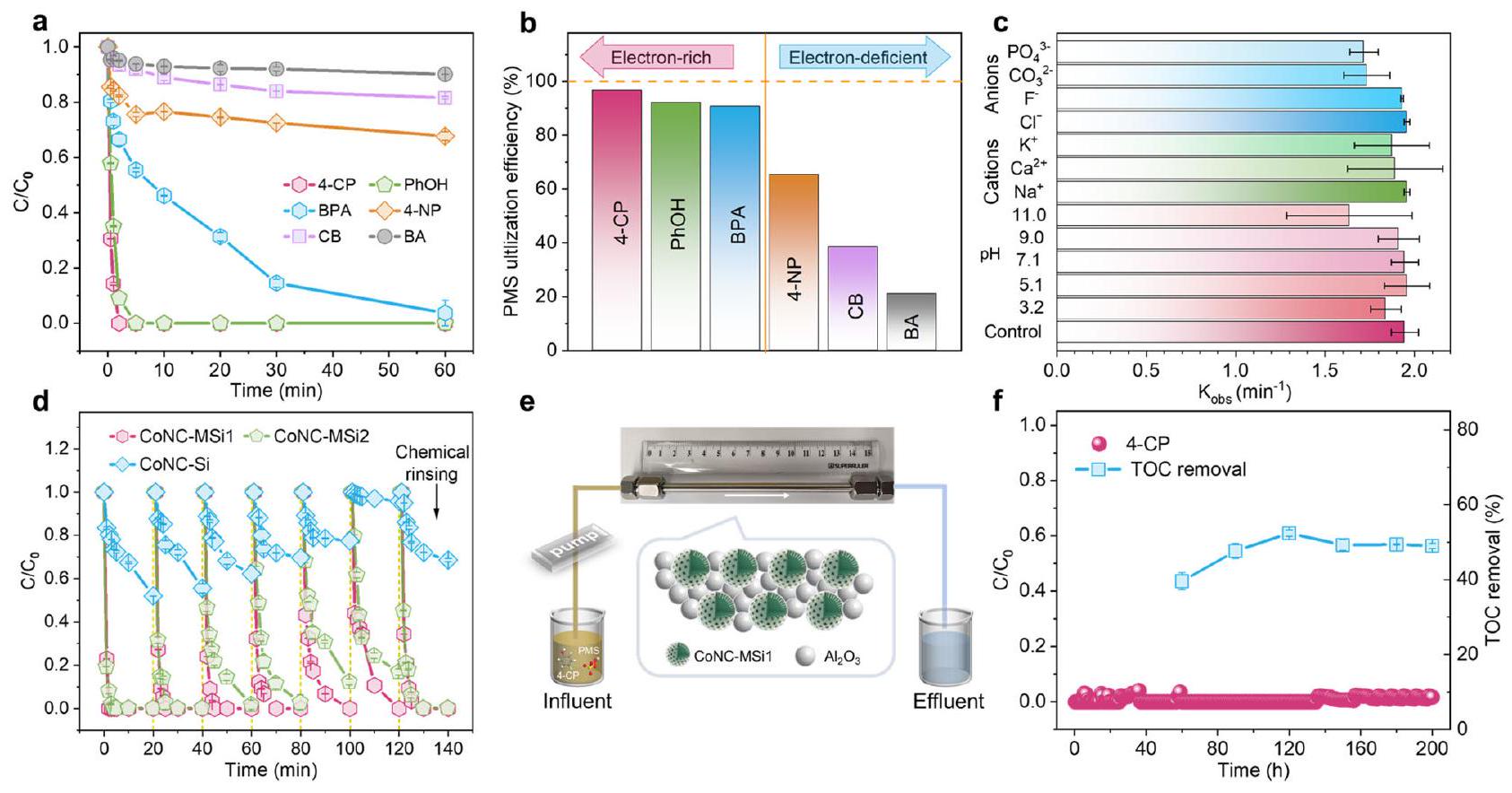 the CoNC-MSi1/PMS system achieved only moderate 4-CP mineralization (