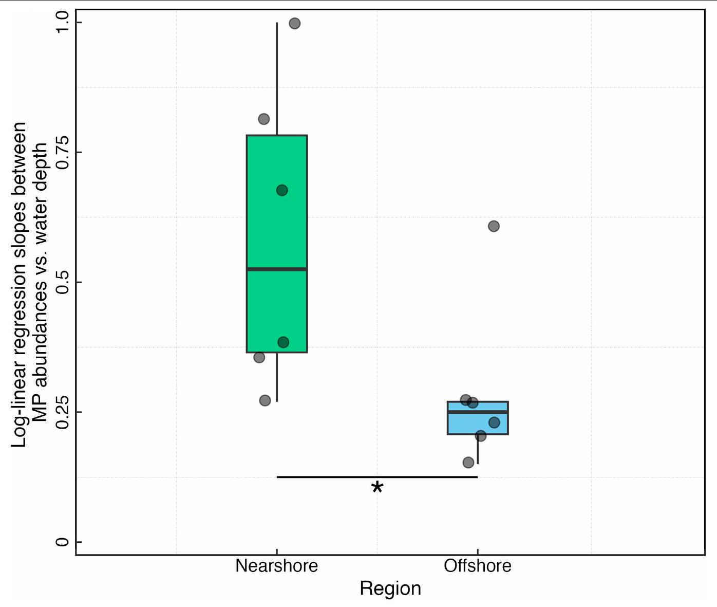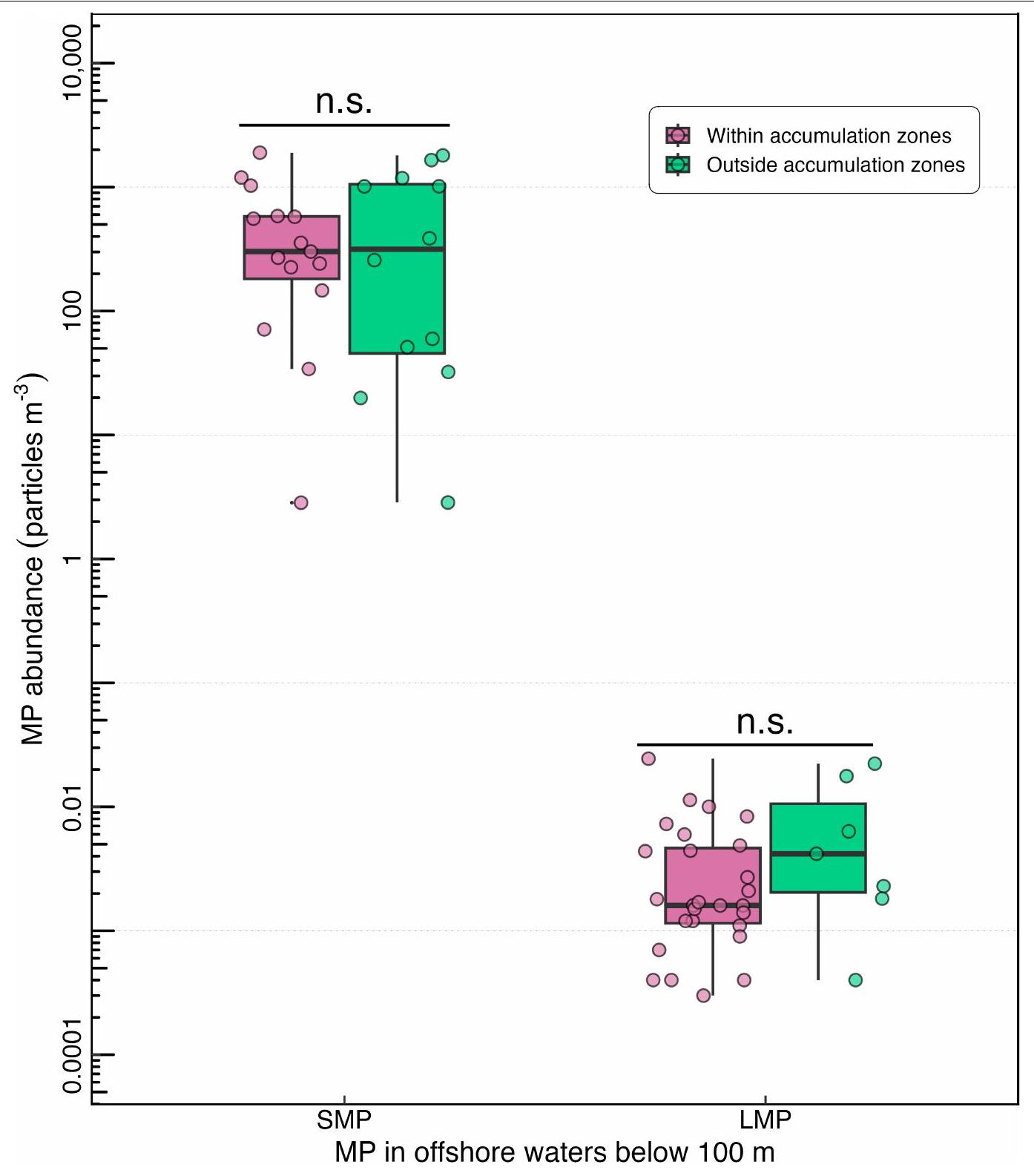 الميكروبلاستيك. تم ملاحظة وفرة عالية باستمرار في المياه العميقة، بما في ذلك أكثر من 1,100 جزيء لكل