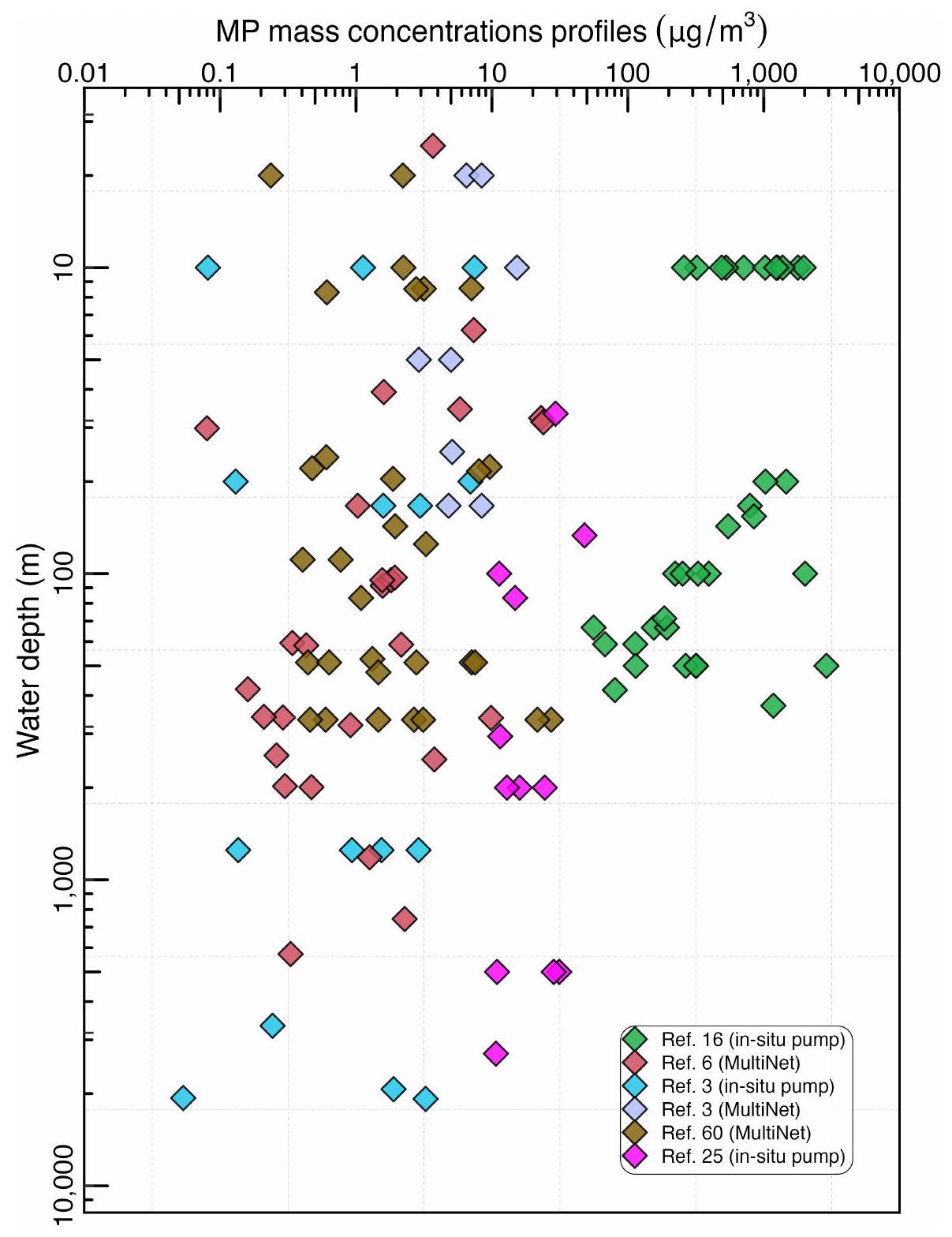 في المحيط الأطلسي وتوزيعها العمودي المودل. مجلة تلوث البحر. 100، 70-81 (2015). - غونالان، ك. وآخرون. هل يؤثر تدرج عمود الماء على التوزيع العمودي للميكروبلاستيك؟ التلوث البيئي. 340، 122865 (2024).