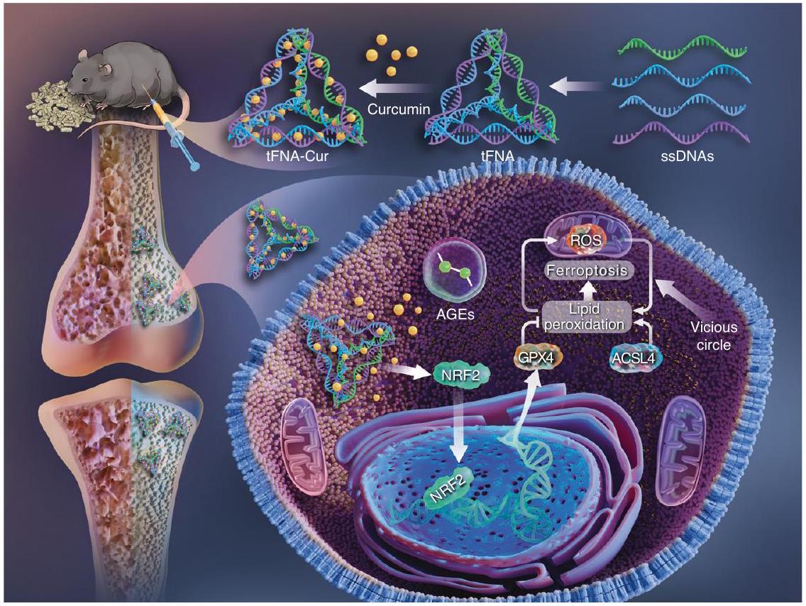 جزيئات نانوية قائمة على رباعي السطوح DNA لتثبيط الفيروبتوز: توصيل متفوق للكركمين وتخفيف هشاشة العظام السكري