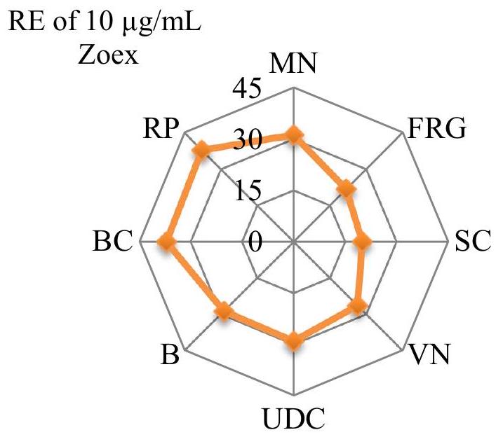 the mitotic cycle, and MN formation. Zoex protects cells against such oxidations and ensures the continuation of the normal mitotic cycle. Phenolic compounds such as gingerol and shogaol in Zoex have the effect of reducing oxidative stress and increasing the levels of antioxidants such as GSH. This effect also neutralizes oxidative damage in cells and protects proteins such as spindle and other macromolecules from damage (Kuhad et al. 2006; Dugasani et al. 2020). Okesola et al. (2019) reported that Z. officianale reduced the frequency of formation of MN and improved the rates of MI, and reported that this protective property was due to active components such as phenols, saponins, and alkaloids in ginger. As a result, permethrin showed a genotoxic effect by causing a decrease in MI rates and an increase in MN frequency, while the Zoex application provided protection against cytotoxicity, and this protection was thought to be related to the active compounds in Zoex.