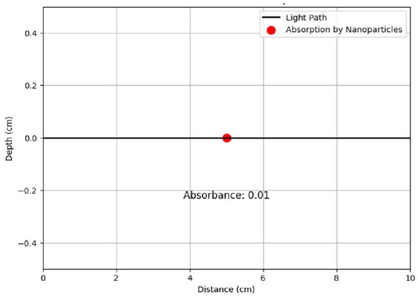 Implementing the Beer-Lambert law ( ɛ.c.l) quantifies light absorption by silver nanoparticles in polymers. Figure 6 illustrates the relationship between absorbance (A), molar absorptivity ( ), concentration (c), and path length (I) as described by the Beer-Lambert law. It demonstrates how silver nanoparticles embedded in polymer matrices enhance light absorption, thereby improving the sensitivity and specificity of wireless sensor networks (WSNs) for biochemical detection. The data presented helps in calibrating sensors and optimizing their performance. Silver nanoparticles, owing to their unique optical properties, play a crucial role in improving the sensitivity and specificity of WSN-based sensors for detecting biochemical analytes. By leveraging the Beer-Lambert law, which quantifies light absorption by nanoparticles, we can accurately determine the concentration of target analytes in the sensing environment. This approach involves embedding silver nanoparticles within polymer matrices, where their interaction with incident light is precisely characterized using UV-Vis spectroscopy. The absorption spectra obtained provide direct insights into the nanoparticles’ effectiveness in absorbing light at specific wavelengths, crucial for sensor calibration and performance optimization. Graphical representations of these interactions facilitate detailed analysis of absorbance patterns, aiding in the design of highly sensitive sensors. Such advancements not only enhance the reliability and accuracy of biochemical sensing in WSN but also expand the application potential in fields such as environmental monitoring, healthcare diagnostics, and food safety. Ultimately, integrating nanoparticles within WSN