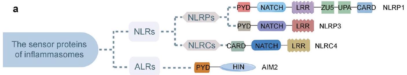 التهاب البنكرياس، والتهاب البنكرياس المزمن. يلعب NLRP3 دورًا حاسمًا في التهاب أنسجة البنكرياس. NLRP3، كاسبيز-1، برو-IL-1