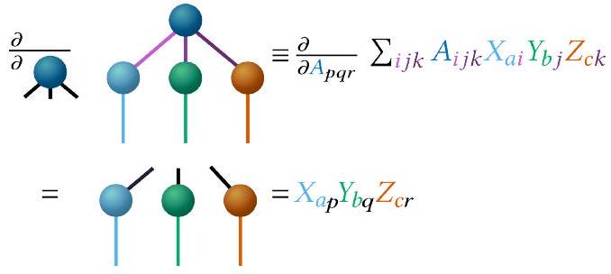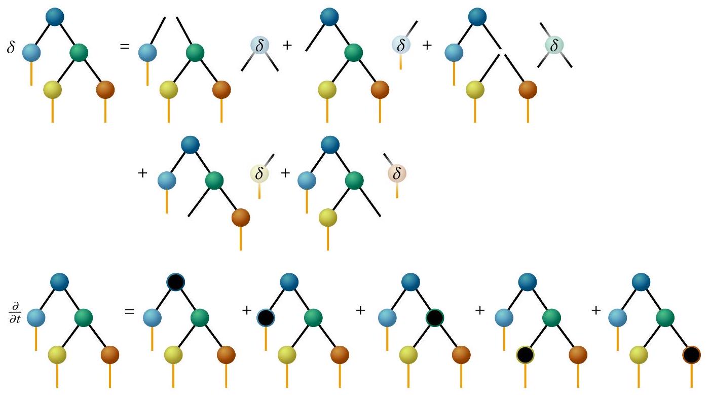 لاشتقاقات معادلات الحركة لكل موتر، نستخدم مرة أخرى TTNS من الشكل 5 كمثال بسيط ولكن نلاحظ أن هذا يمكن تعميمه بسهولة على أي TTNS، بما في ذلك TTNSs ذات طبقات أكثر. التغير من الدرجة الأولى والمشتقة الزمنية لـ
