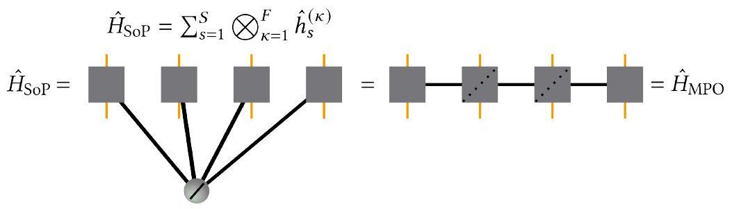 Note that these SVD-based approximations [193,197] make use of temporary matrices that scale with the bond dimension and the number of sum terms in an SoP Hamiltonian (or, equivalently, the MPO bond dimension). As there can be more than terms in typical applications, this can lead to prohibitively large matrices and additional approximations need to be introduced, e.g., by only considering parts of the total Hamiltonian for the subspace enrichment.