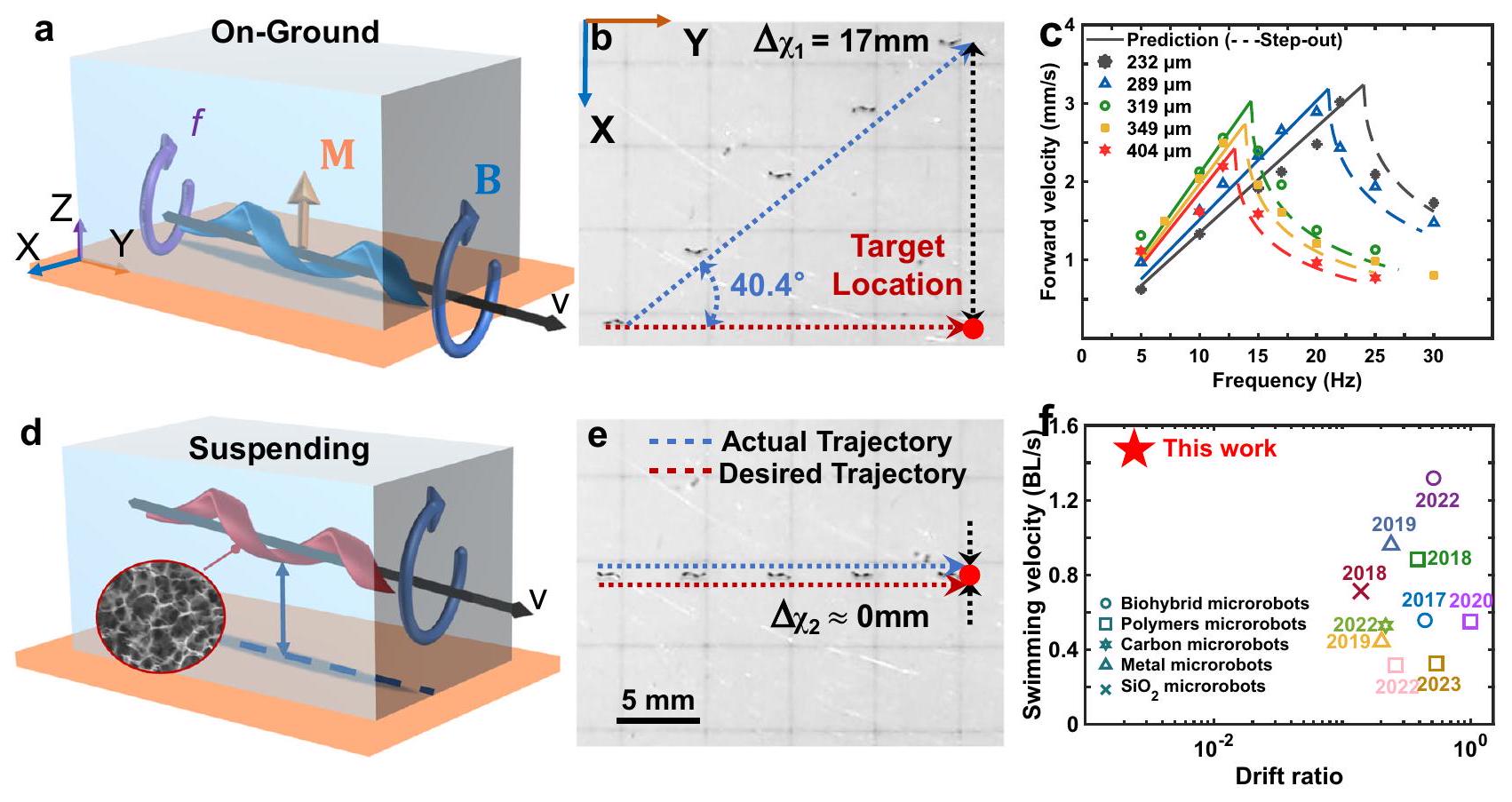 magnetic field were comparable to those of other magnetic-field-driven millirobots. Under a high rotational frequency of 24 Hz , the lightest helical GH millirobot achieved a high forward velocity of