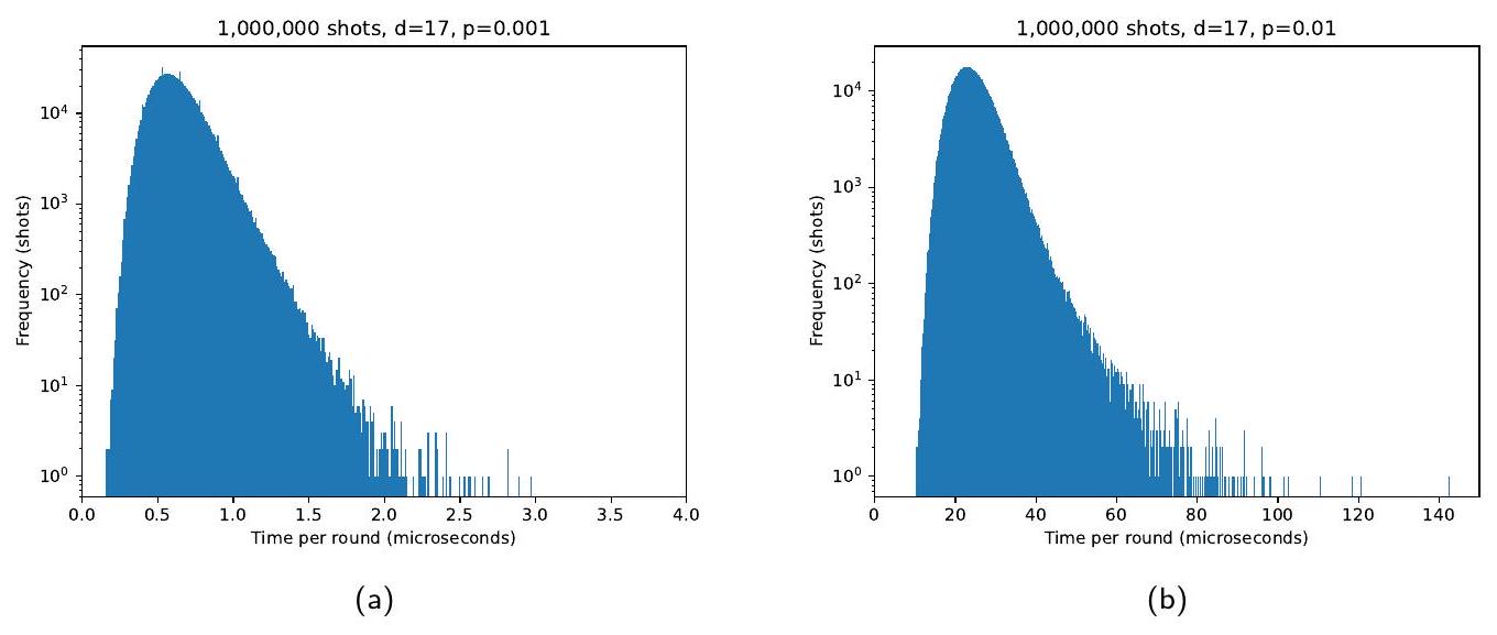سيولد حاسوب كمومي فائق التوصيل يعتمد على شفرة السطح مع مليون كيوبت فيزيائي بيانات قياس بمعدل حوالي 1 تيرابت في الثانية. يجب معالجة هذه البيانات على الأقل بنفس سرعة توليدها بواسطة جهاز فك التشفير، وهو البرنامج الكلاسيكي المستخدم للتنبؤ بالأخطاء التي قد تحدث، لمنع تراكم البيانات الذي ينمو بشكل أسي.-عمق البوابة في الحساب [Ter15]. علاوة على ذلك، فإن أجهزة فك التشفير السريعة مهمة ليس فقط لتشغيل الحاسوب الكمومي، ولكن أيضًا كأداة برمجية للبحث في بروتوكولات تصحيح الأخطاء الكمومية. يمكن أن يتطلب تقدير متطلبات الموارد لبروتوكول تصحيح الأخطاء الكمومية (مثل تقدير بصمة التيراقوب تحت العتبة [Gid+21]) استخدام أخذ عينات مونت كارلو المباشر لتقدير احتمال الأحداث النادرة للغاية. يمكن أن تكون هذه التحليلات مكلفة بشكل غير معقول دون الوصول إلى جهاز فك تشفير سريع، قادر على معالجة ملايين اللقطات من الدوائر التي تحتوي علىالبوابات في إطار زمني معقول.