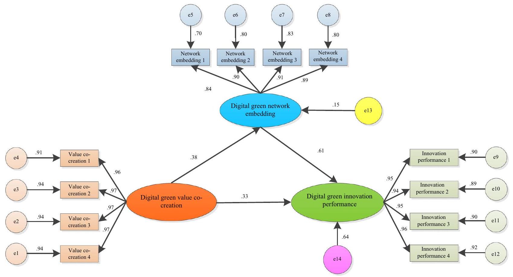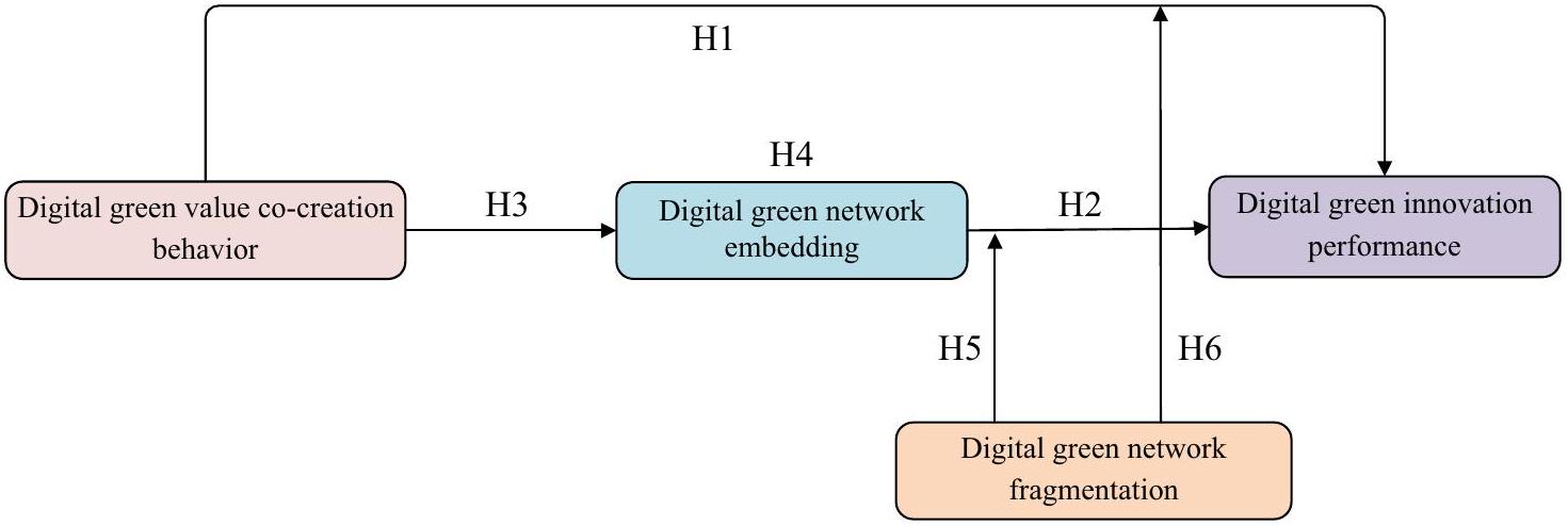 Research limitation. This paper studies the influence mechanism of digital green value co-creation on DGIP under the background of digital economy, which provides theoretical support for the governance of business ecosystem and the formulation of cooperation strategies for digital green innovation enterprises. However, due to the diversity of business ecosystem structure and the need for digital green value co-creation to build different ways of value acquisition according to specific industry conditions, this study did not give a comprehensive explanation.