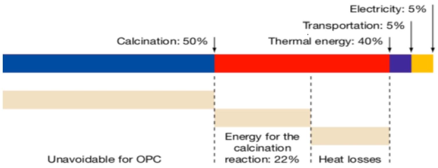 والتقليدي للطاقة في جنوب إفريقيا، والصين ودول أخرى (بيرييرا وآخرون 2011). تنتج عملية إنتاج الكلنكر، المكون الرئيسي للأسمنت البورتلاندي، حوالي 0.527 طن من