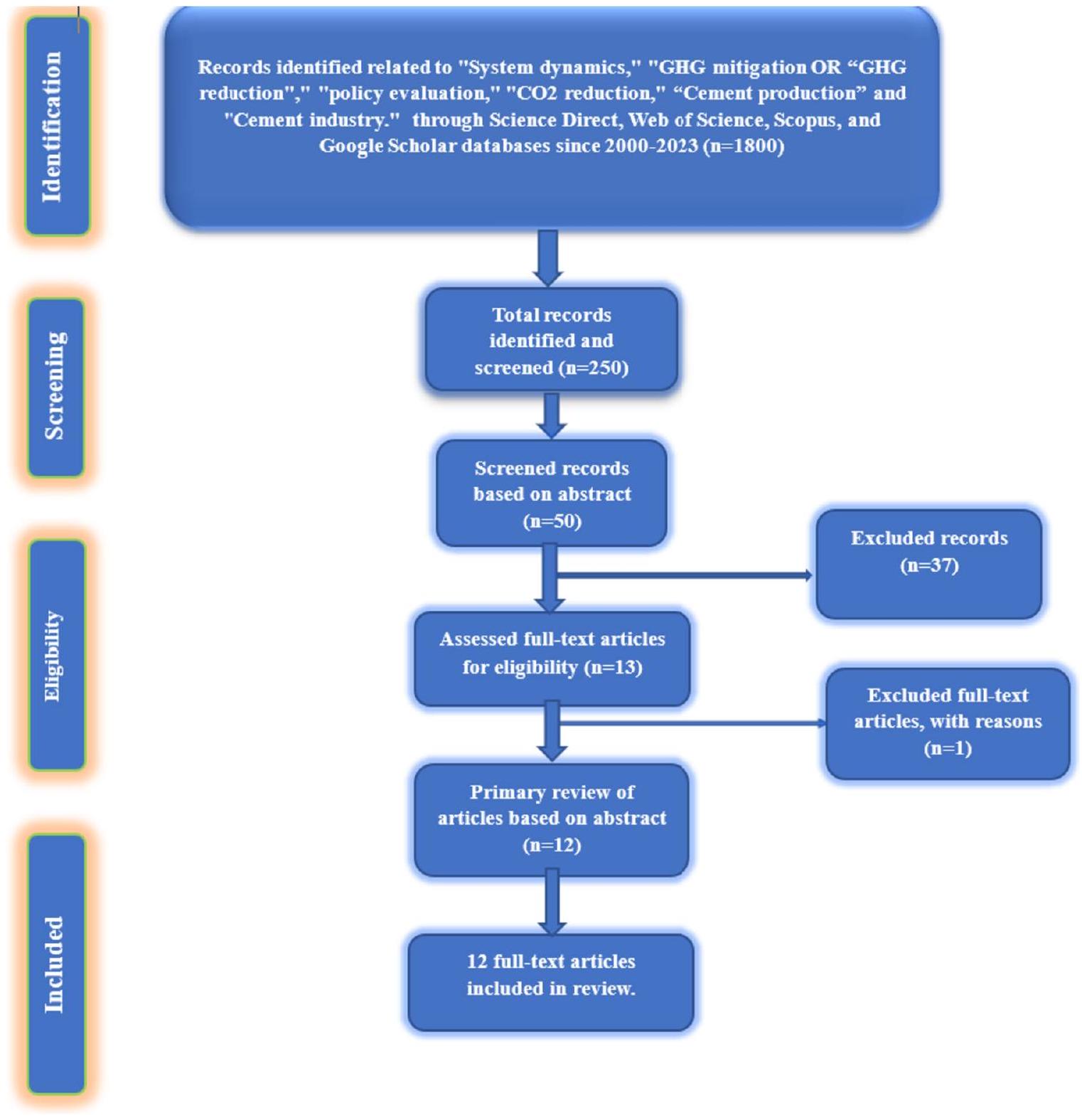 تنفيذ (دوغان وآخرون 2018). قد يؤدي تجاهل التغذية الراجعة المهمة في اتخاذ القرار إلى مقاومة السياسات (ستيرمان 2002). لذلك، يمكن أن يساعد استخدام نموذج النظام الديناميكي أصحاب المصلحة في اتخاذ قرارات مستنيرة واستكشاف خيارات سياسية متنوعة. تُستخدم نماذج النظام الديناميكي بشكل متزايد للتنبؤ بانبعاثات الكربون في مختلف الصناعات، لكن تطبيقها في قطاع الأسمنت محدود. يقدم قسم المنهجية نظرة عامة على الدراسات ذات الصلة التي استخدمت النظام الديناميكي للتنبؤ بالانبعاثات أو تقييم استراتيجيات/سياسات التخفيف في صناعة الأسمنت. يتم تحليل الدراسات المختارة بناءً على طرق التخفيف التي تم تقييمها، نطاق الدراسة، أبعاد النمذجة والإعدادات التجريبية.