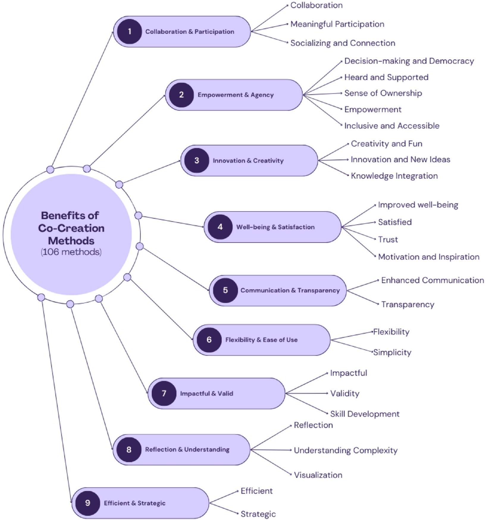 By optimizing resource use, encouraging strategic insights, and enhancing structured decision-making, cocreation methods in this theme support both efficiency and high-level problem-solving, making them valuable tools for addressing complex challenges across diverse contexts.