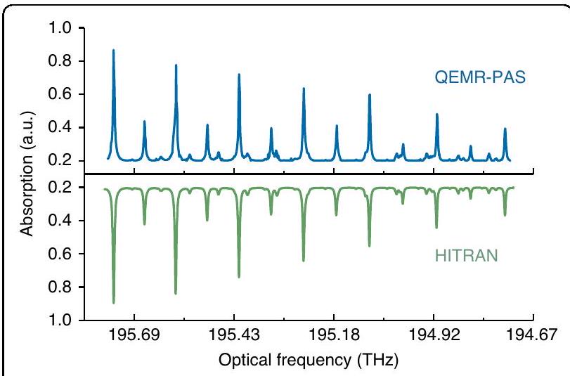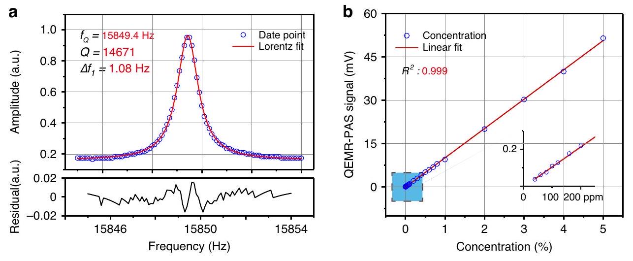لـ QTF. نظريًا، تقتصر دقة الطيف لـ QEMR-PAS فقط على عرض خط الليزر. لم يتم اختبار دقة الطيف الأعلى (المعني بإعادة بناء الطيف لميزات الامتصاص الخالية من دوبلر).