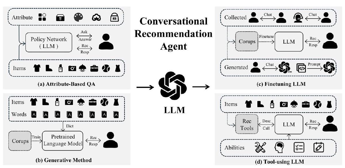 محمي، مع أذونات مستخدم صارمة لمشاركة معلوماتهم الشخصية. بالنسبة للتمييز، قد تعكس نماذج اللغة الكبيرة بشكل لا مفر منه التحيزات الموجودة في بيانات التدريب، مما يؤدي إلى توصيات تمييزية. بالنظر إلى توزيع المستخدمين والعناصر المتحيز، والذي يكون أكثر أهمية في أنظمة التوصية ذات تأثير الذيل الطويل، حيث يمكن أن يؤدي توزيع المستخدمين والعناصر المتحيز إلى قرارات تفضل الخيارات الأكثر شيوعًا، مما يؤدي إلى التمييز ضد بعض المستخدمين. تتعلق القلق النهائي بالاعتبارات الأخلاقية. يمكن أن توجه الرسائل الضارة، إذا تم النقر عليها من قبل المستخدمين بشكل غير واعٍ، نماذج اللغة الكبيرة نحو إنتاج محتوى ضار مشابه. ومع ذلك، عند المساعدة في اتخاذ القرارات الشخصية، من الضروري أن تمتلك نماذج اللغة الكبيرة القدرة على تقليل التعرض للرسائل الضارة وتوجيه المستخدمين بطريقة مسؤولة. قد تقدم أساليب مثل بناء ذكاء اصطناعي دستوري، حيث يتم اعتماد النقد والمراجعات والتعلم تحت الإشراف لتحسين نماذج التدريب، رؤى قيمة.