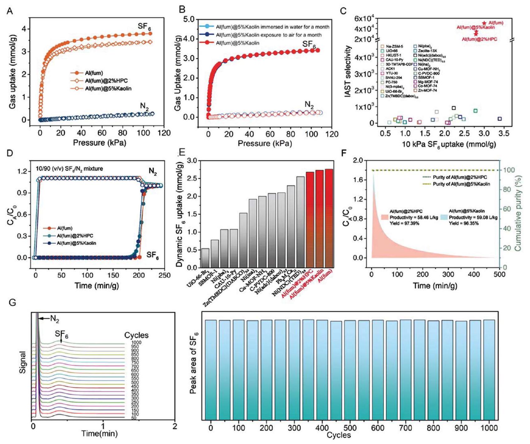 physisorption mechanism in MOFs driving gas separations often leads to a notable trade-off between adsorption selectivity and capacity, which significantly affects the productivity and separation efficiency in practice. Nevertheless, fum , and Kaolin have successfully achieved the balance between high selectivity and adsorption capacity (Fig. 2C).
