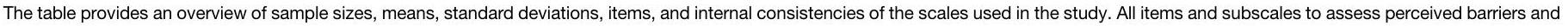 Perceived barriers | Social | 215 | 2.76 | 0.79 | 8 | – | 0.84 |