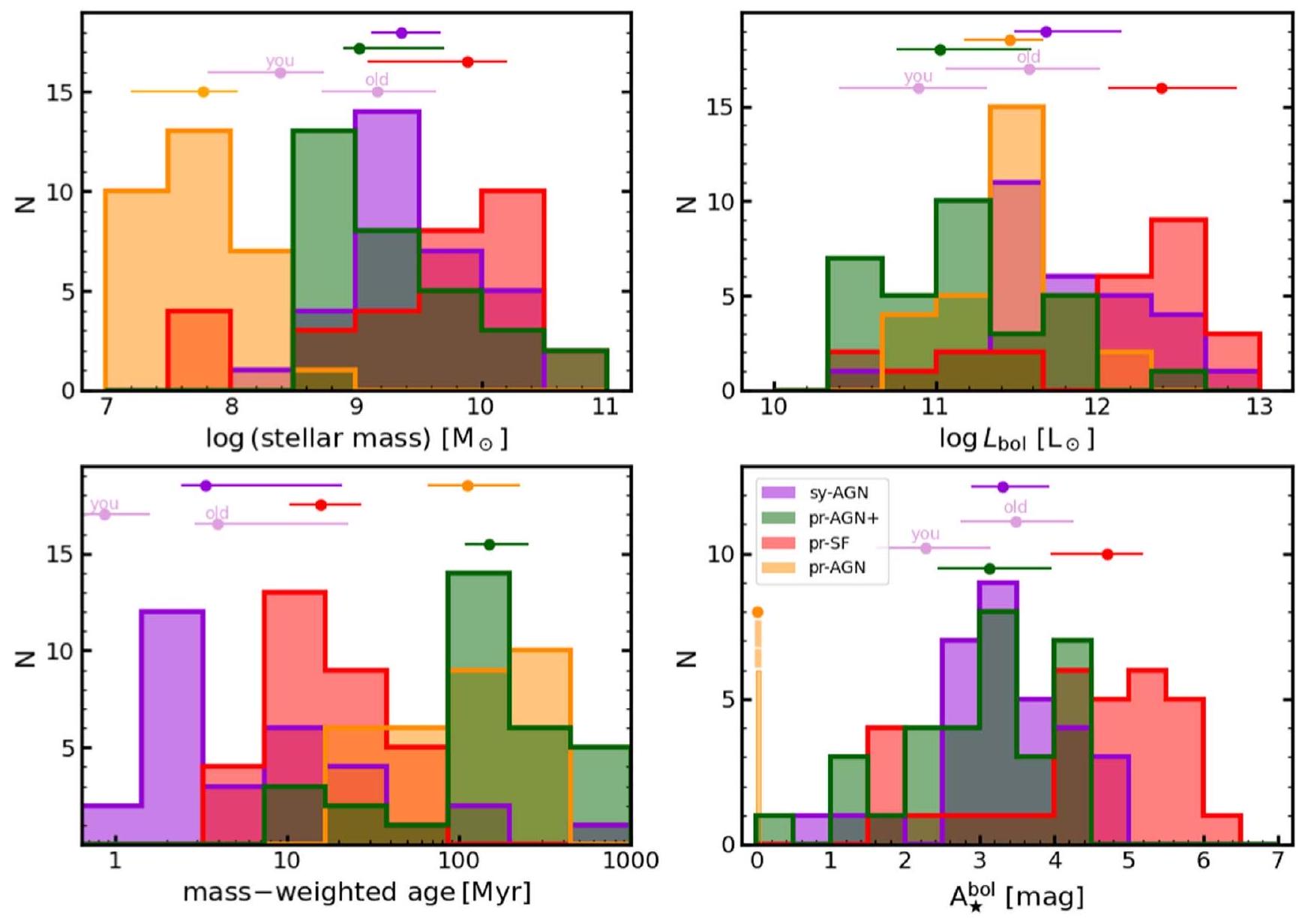 stars are relatively old, and that could intuitively imply that they are not so obscured, or the evolved state of the galaxy gives time for the SMBH to grow), but the fits are significantly worse.