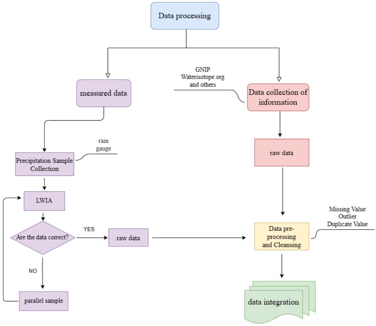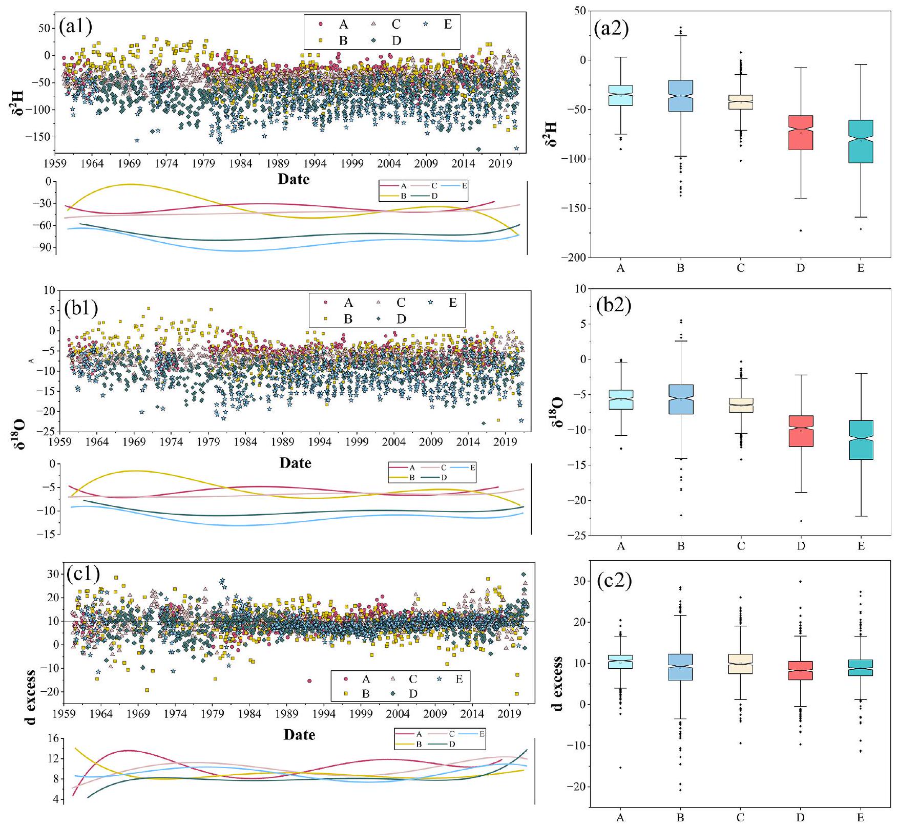 ary patterns of ecological environments. Among these, stable isotopes in precipitation are an excellent comprehensive tracer, playing an important role in revealing water cycle processes, climate change information, and mechanisms of water resource use in ecosystems (Bowen et al., 2019; Wang et al., 2022). Therefore, in the face of increasingly complex climate conditions, we need more comprehensive data on stable isotopes in precipitation at various space scales and timescales to help understand climate change phenomena.