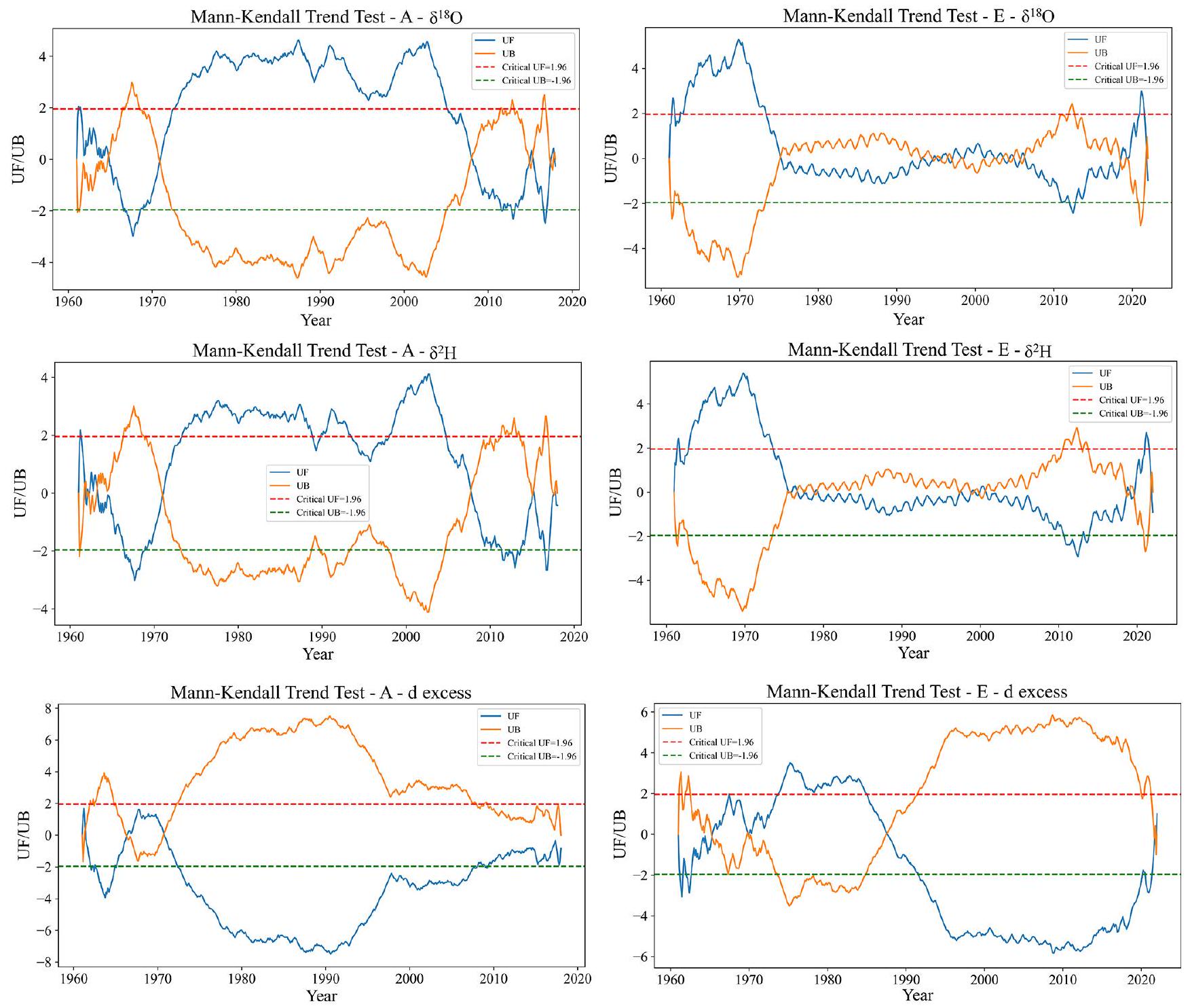 ومع ذلك، فإن التقلبات الموسمية في نظائر الهيدروجين المستقرة لهطول الأمطار الاستوائية ضئيلة، وهناك اتجاه متقلب على مدى حوالي 20 عامًا. معظم المناخات الجافة (